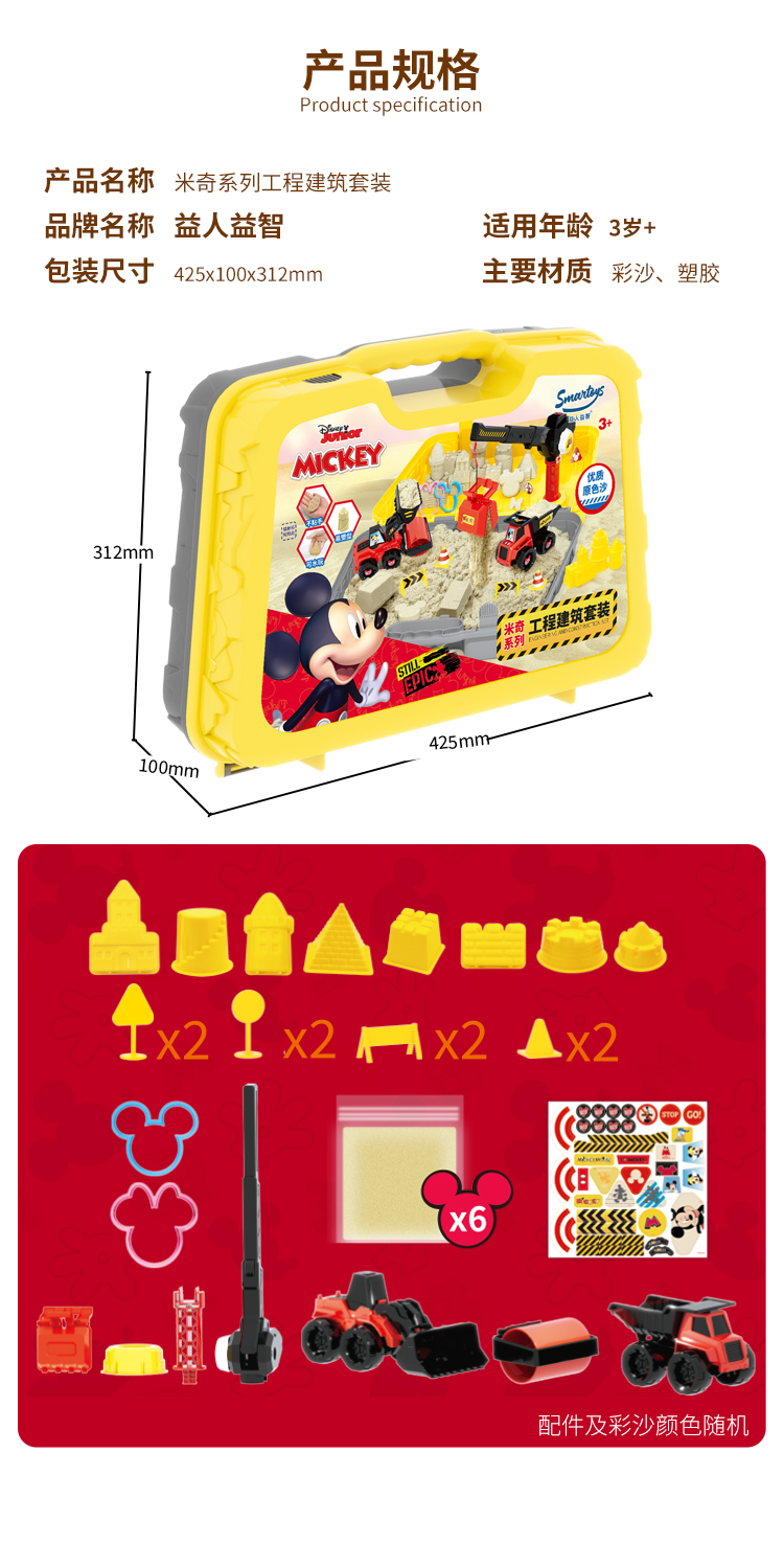 正版迪士尼授权米奇太空沙原色沙工程建筑套装创意手工diy儿童玩具盒装便收纳