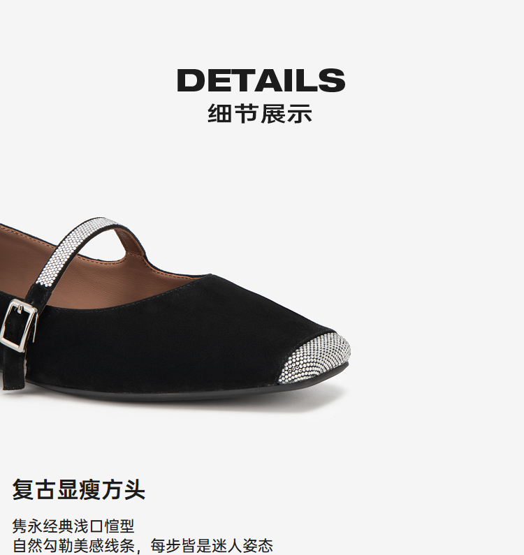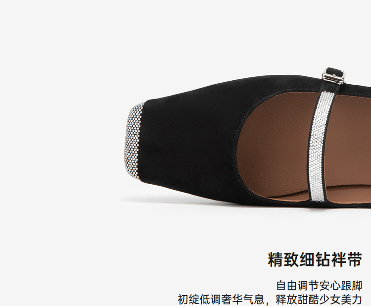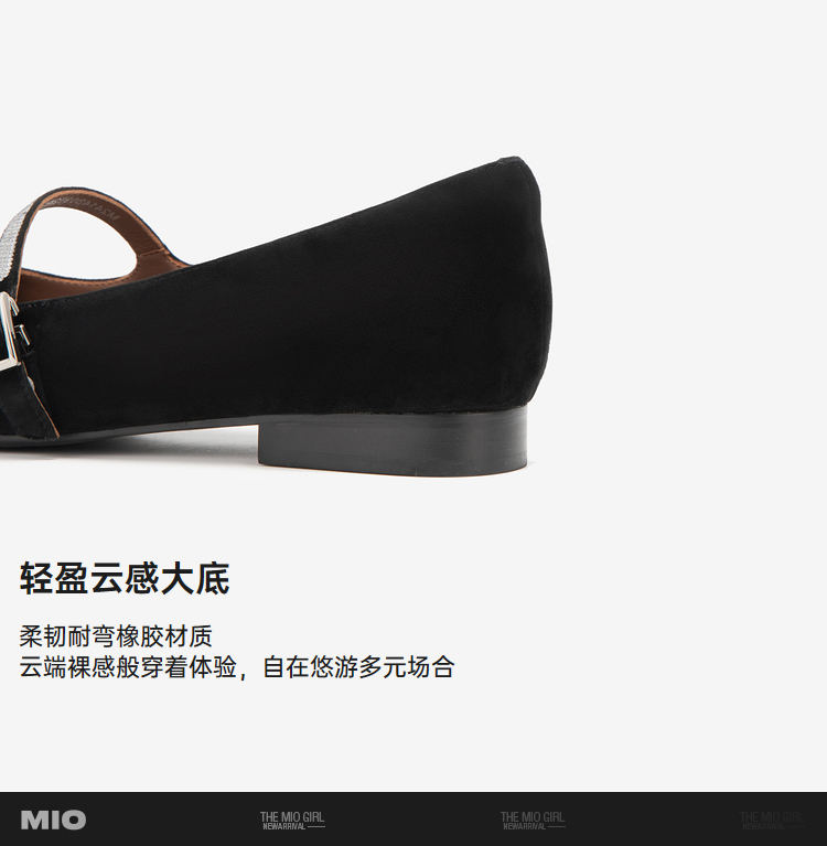 MIO米奥春季显瘦方头单鞋精致细钻袢带甜酷玛丽珍鞋女鞋M241430952