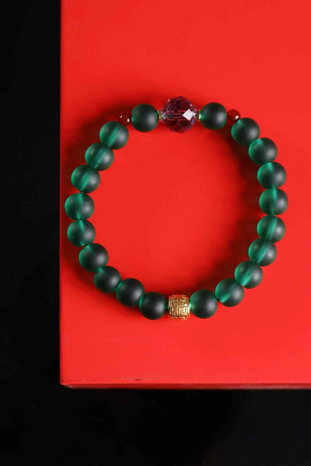 | 配件 | 红玛瑙,铜隔片,紫水晶切面,沙金回纹桶珠 |