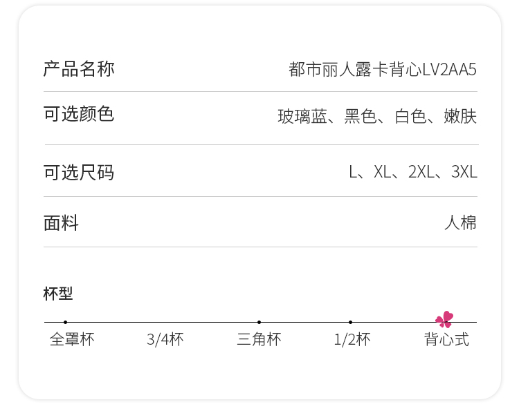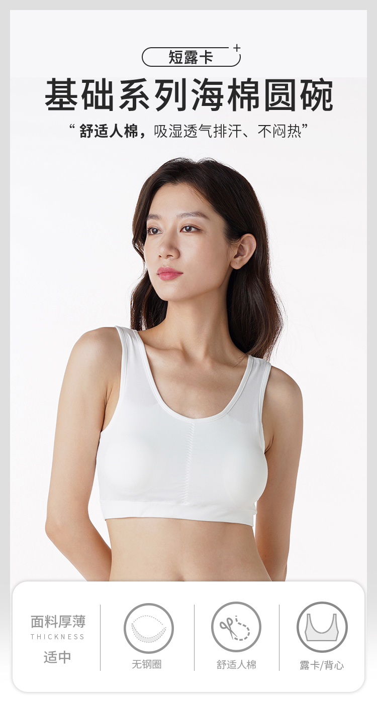 都市丽人基础简约棉质短露卡人棉平纹背心无排扣无钢圈LV2AA5