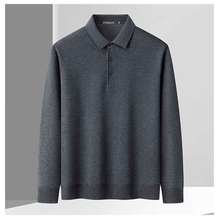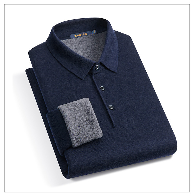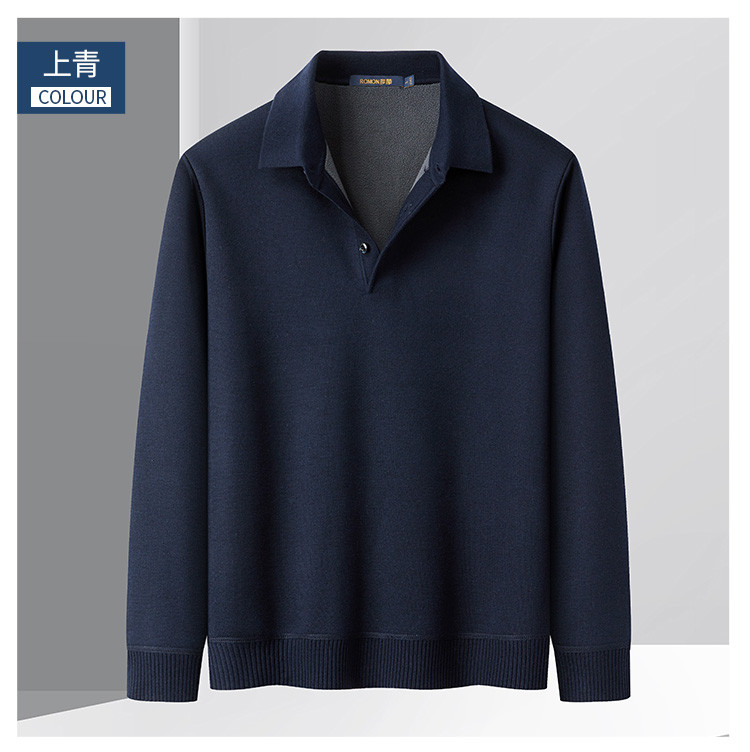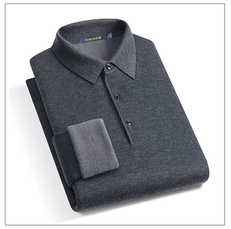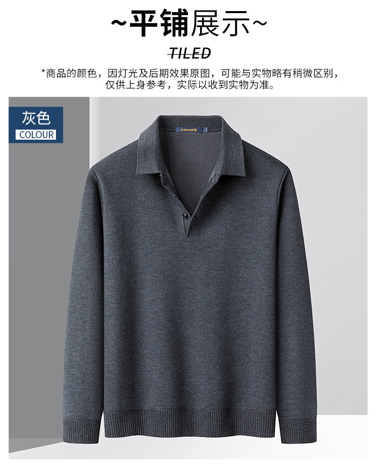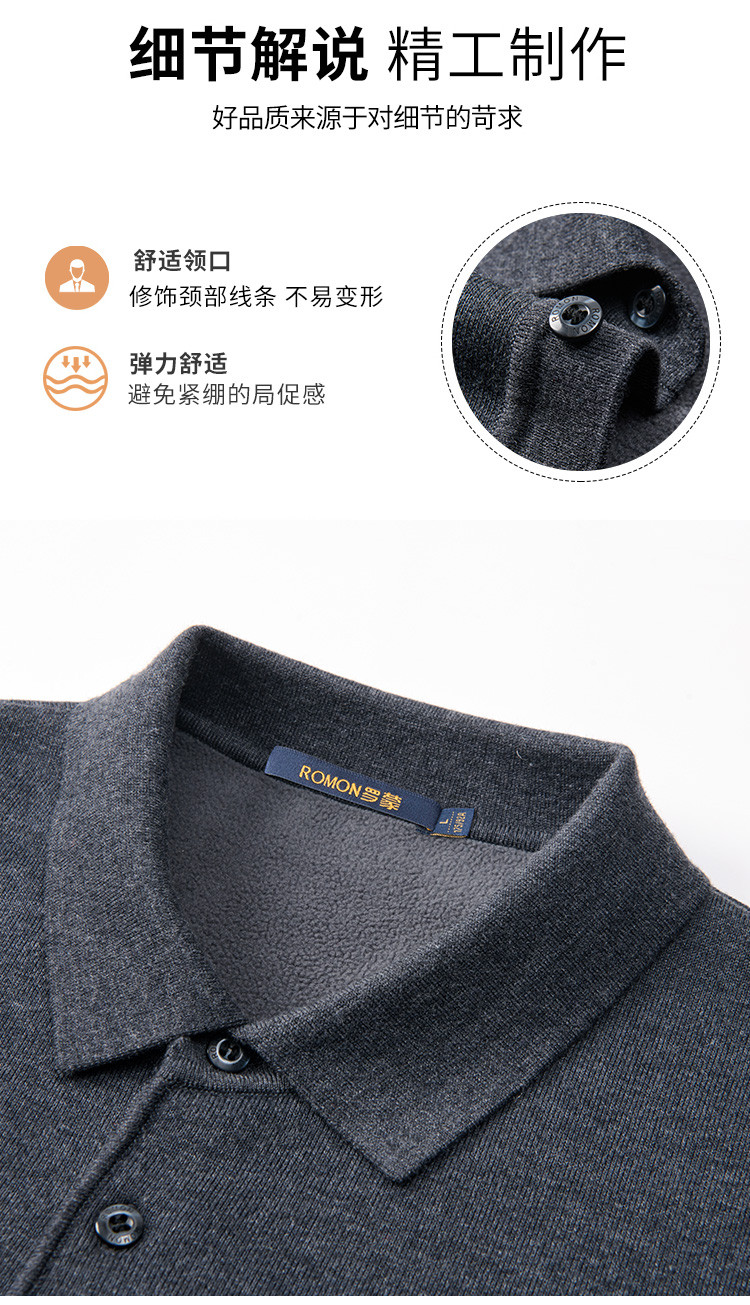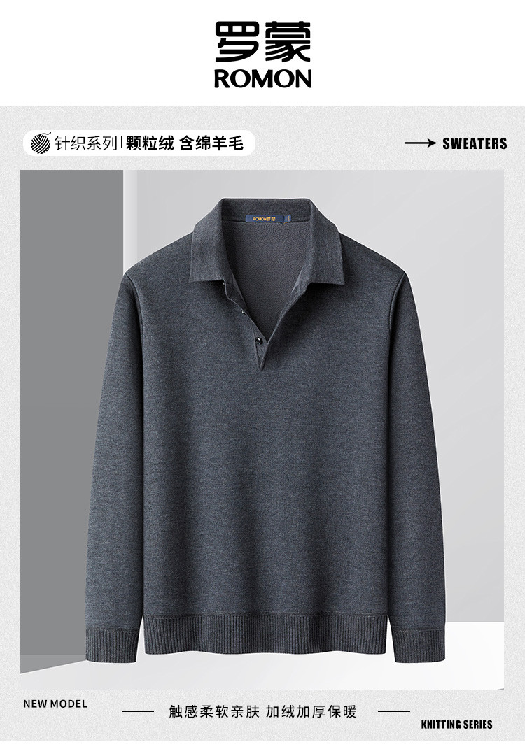 【含羊毛加绒加厚】罗蒙颗粒绒加绒polo衫男士保暖毛衣男毛衫