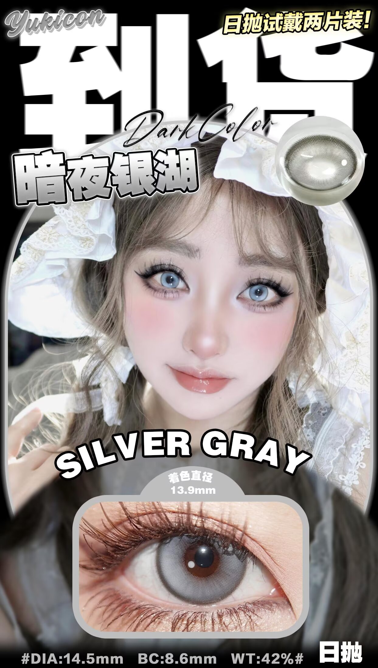 yukicon 暗夜银湖 日抛 两片 14.5mm 参考着色13.9mm 基弧8.6 含水42% 新锐国货