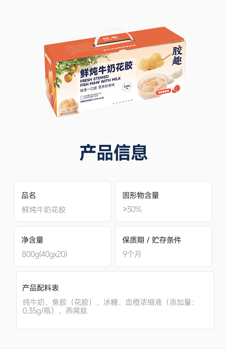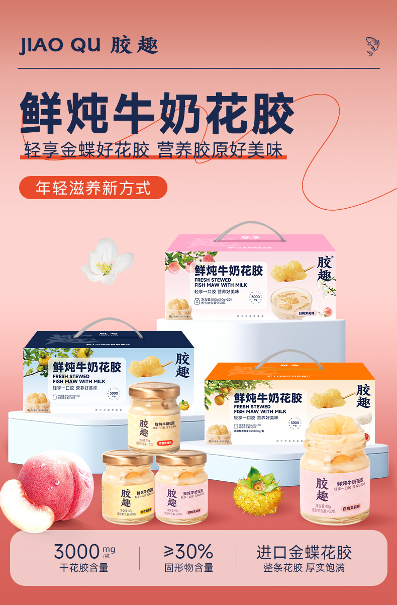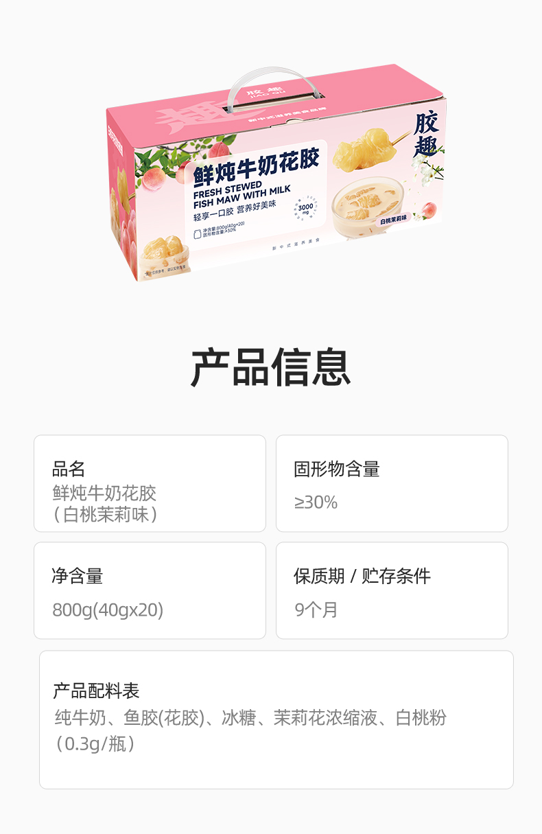 胶趣鲜炖牛奶花胶礼盒40g*20瓶金蝶花胶即食胶原蛋白礼盒【放心甄选】