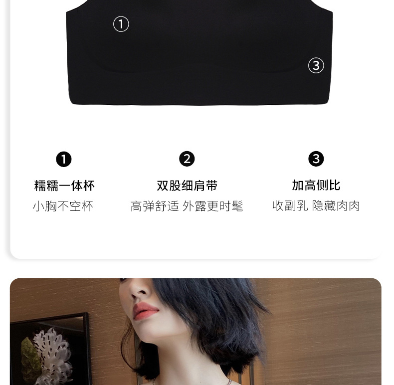 美背无痕内衣女聚拢提拉小胸防下垂一体吊带薄款舒适运动文胸背心
