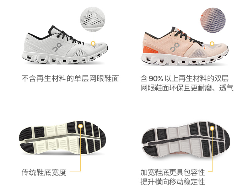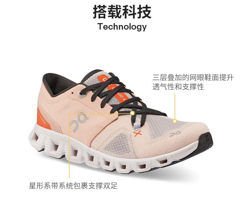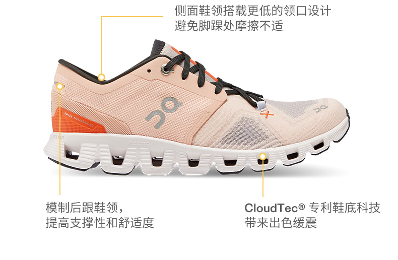 On昂跑 女款 Cloud X 3 全新一代综合体能训练运动鞋