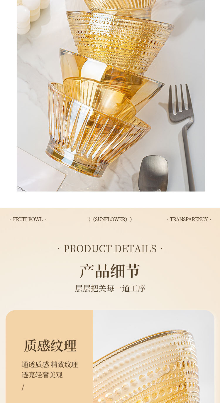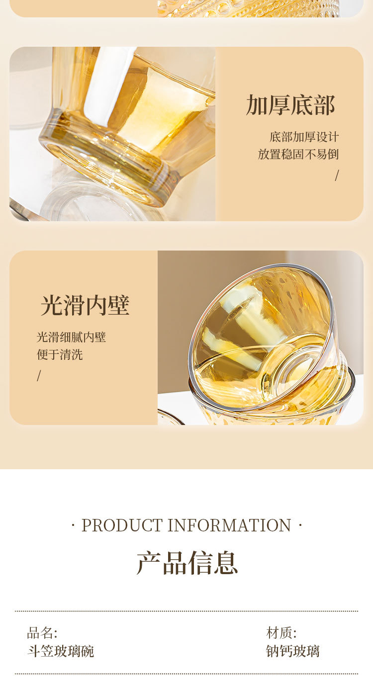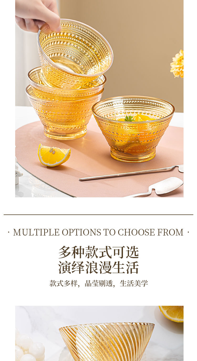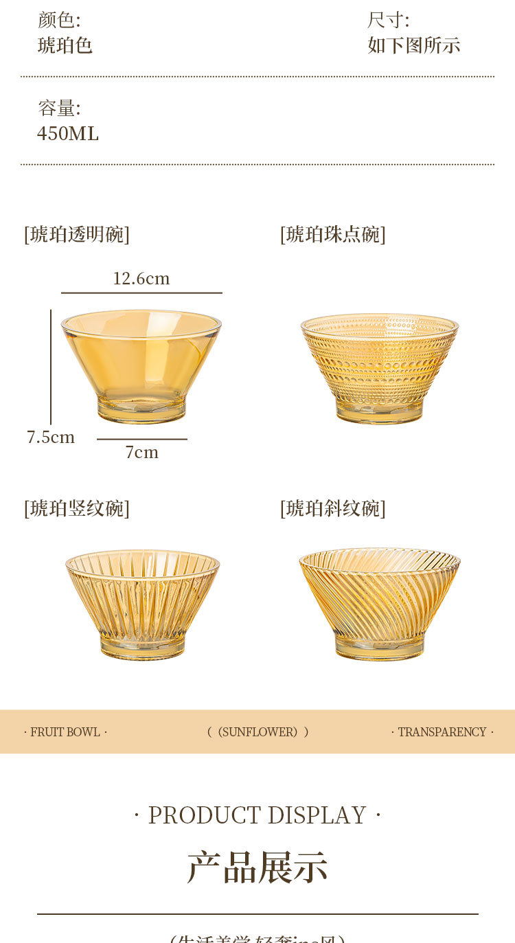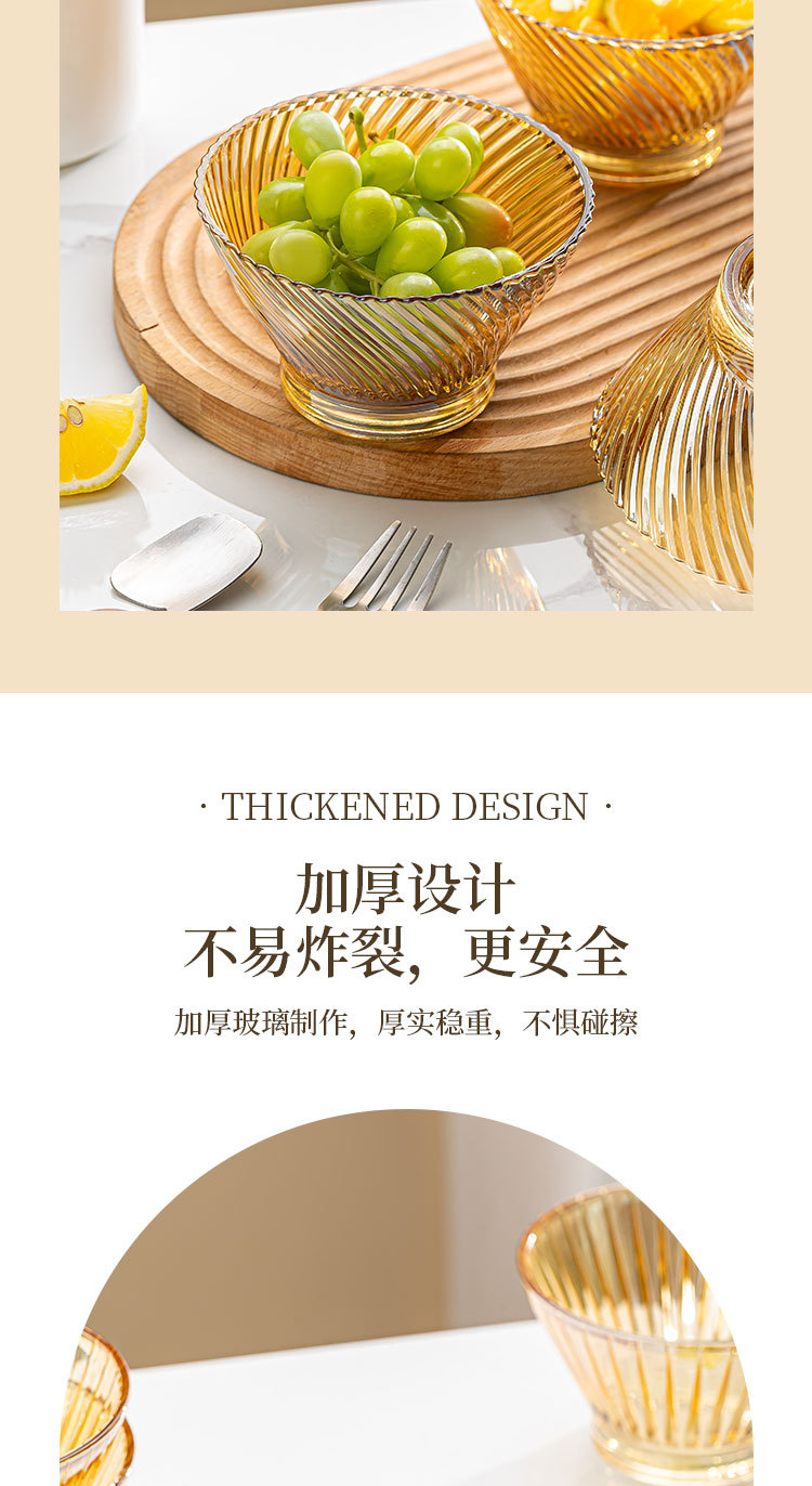 「19.9到手4只!高颜值」创意琥珀色加厚玻璃斗笠碗 沙拉碗酸奶甜品碗餐饮用具