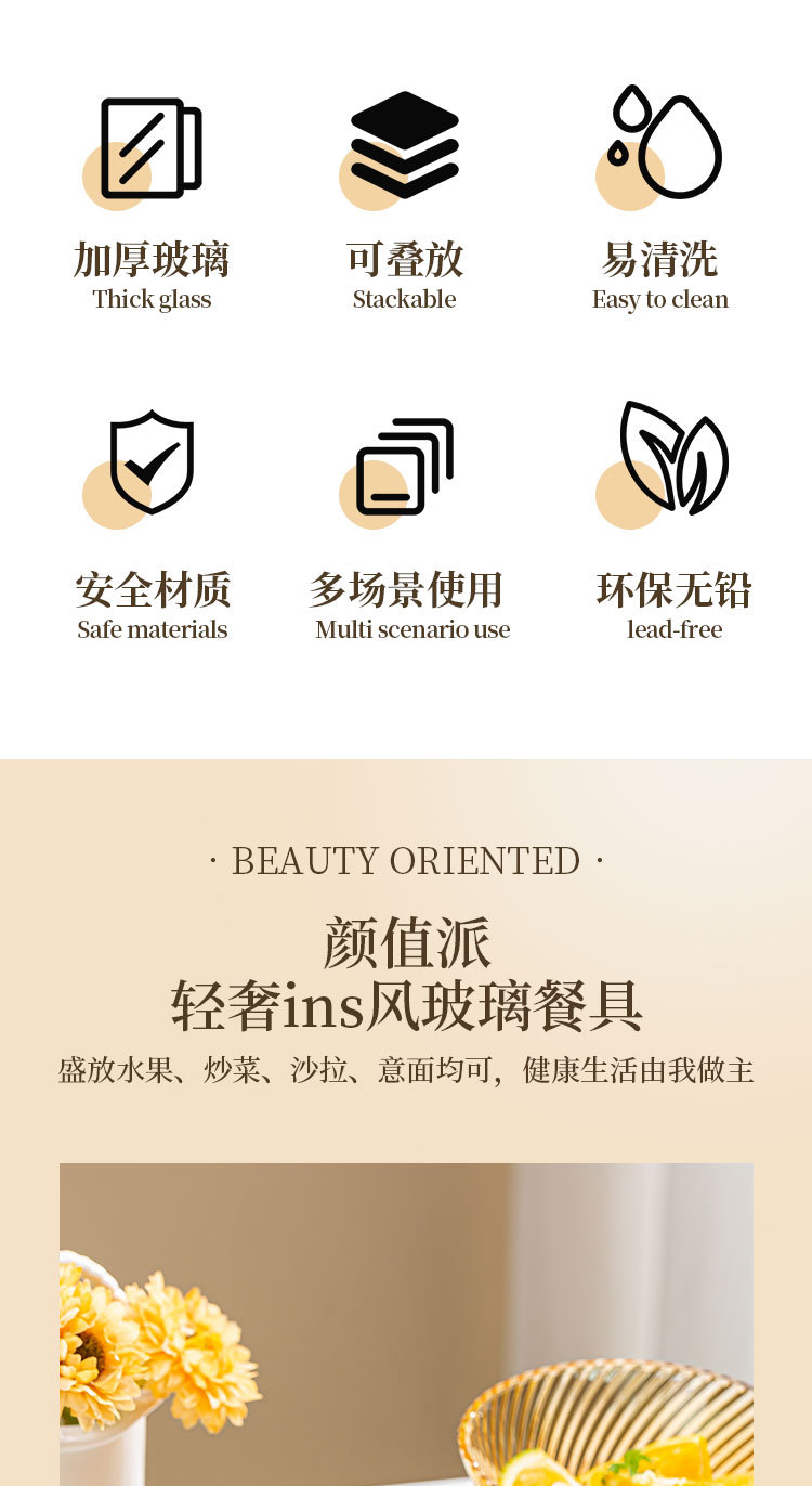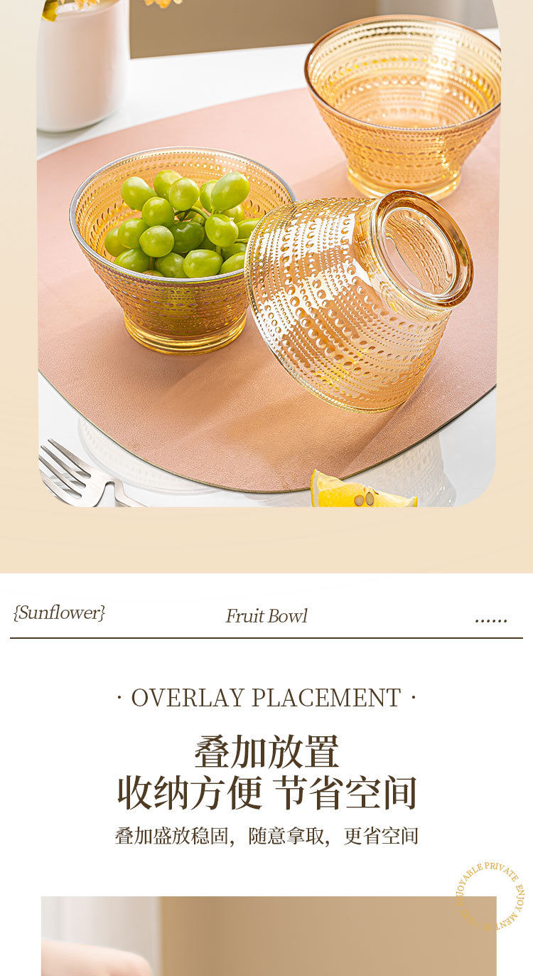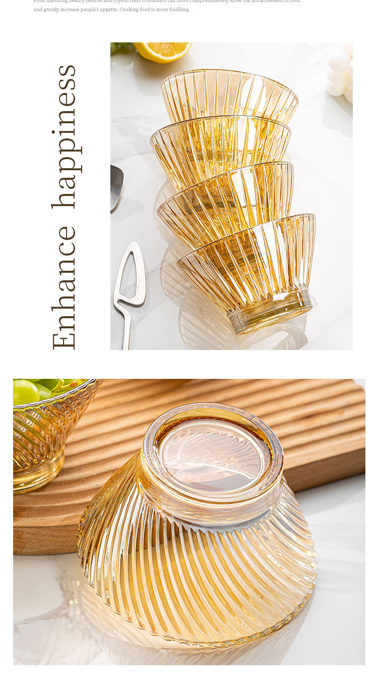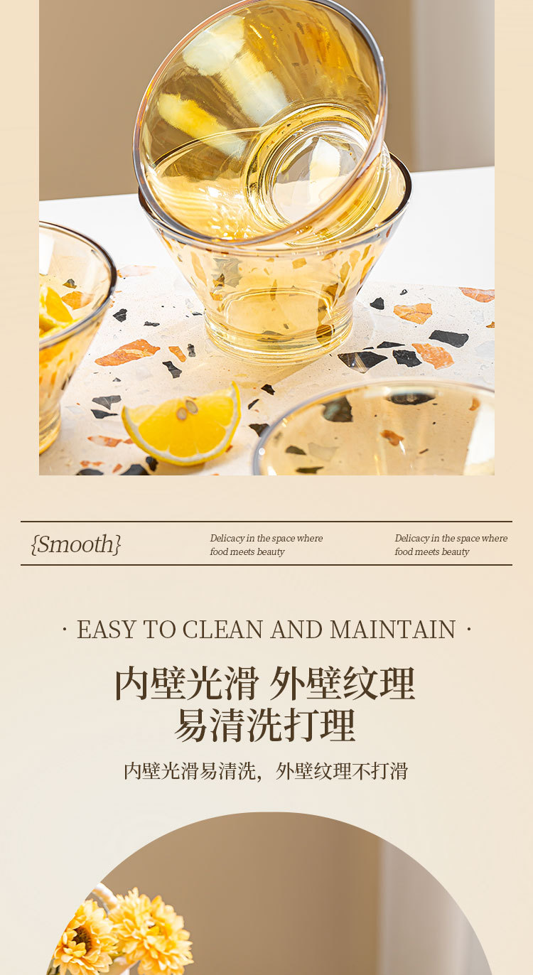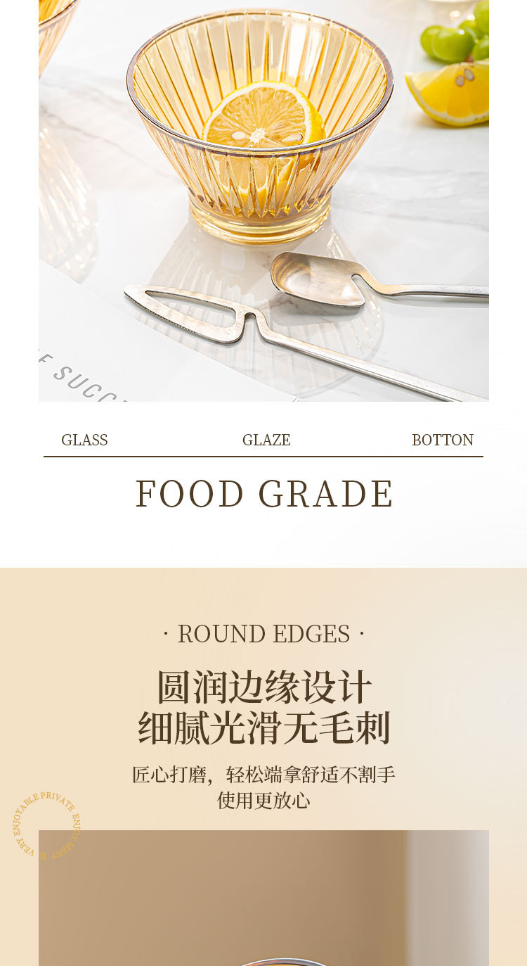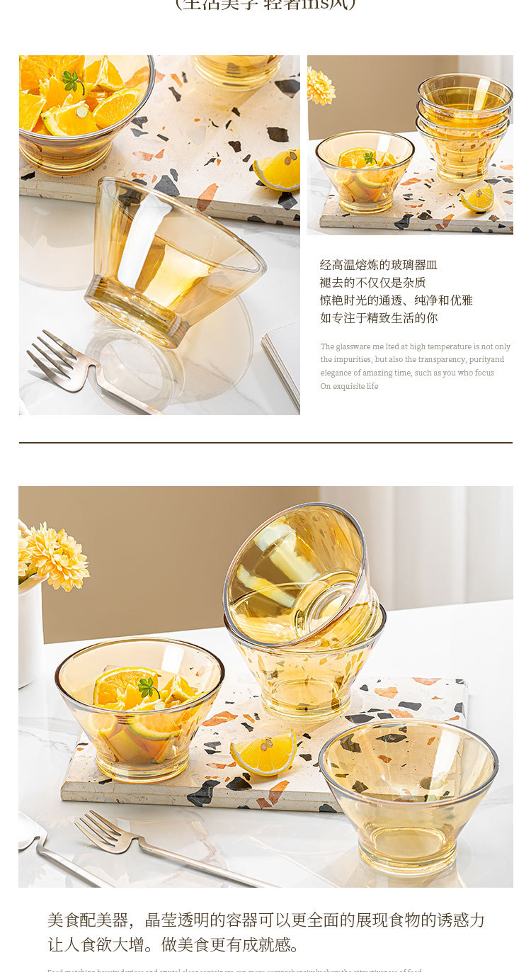 「19.9到手4只!高颜值」创意琥珀色加厚玻璃斗笠碗 沙拉碗酸奶甜品碗餐饮用具
