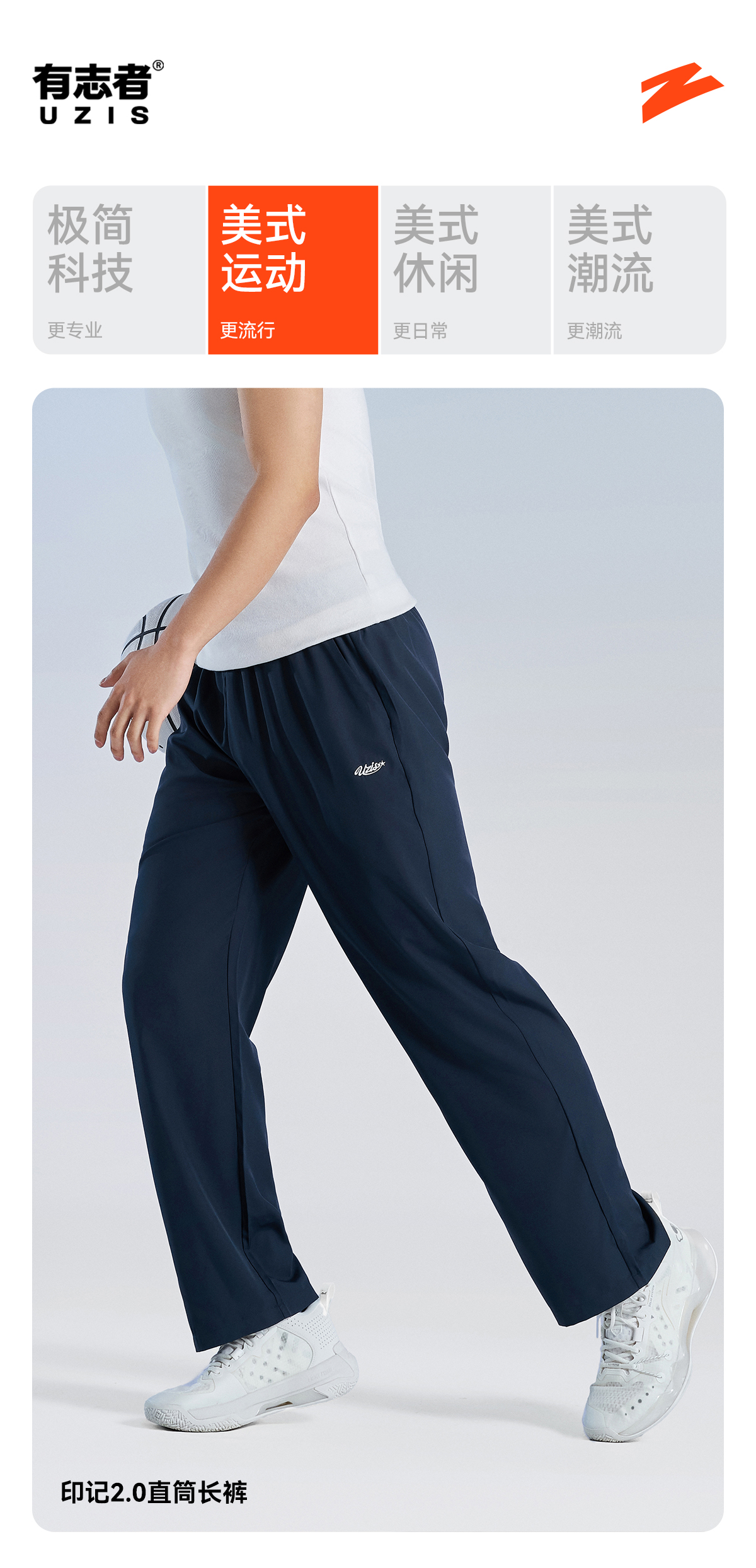 有志者UZIS 运动长裤男夏季宽松薄款梭织篮球跑步直筒速干印记2.0