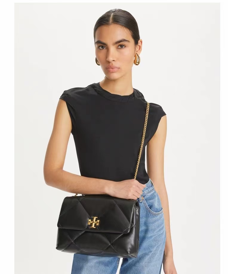 Kira 两用肩背包,透过蓬松的菱形绗缝设计,在经典廓形上焕现立体质感,搭配标志性斜面双TLOGO与可调节链条背带,实现肩背斜挎的自在切换,随心适配多元场合。 Kira菱格纹绗缝两用肩背包