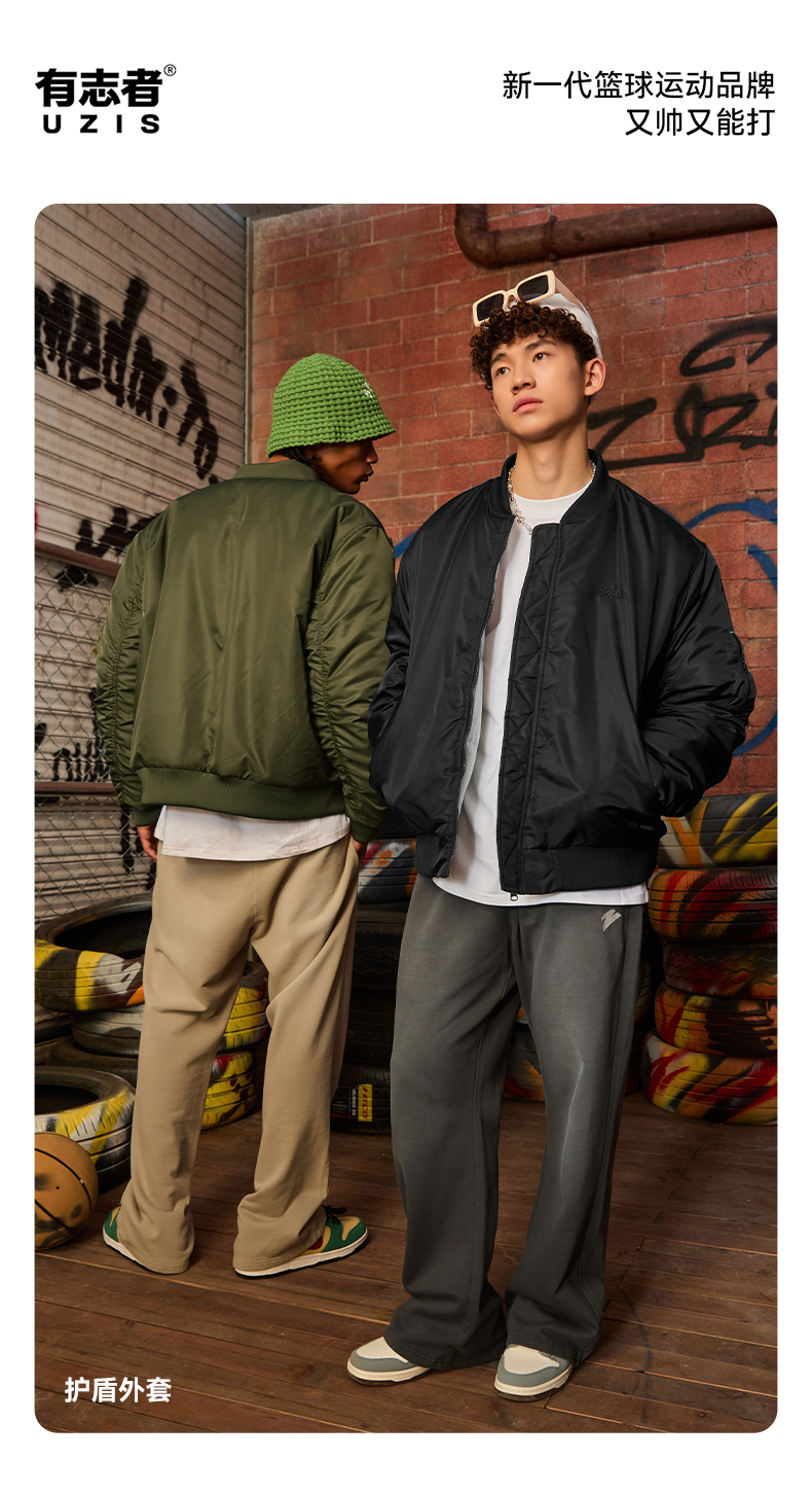 有志者UZIS 夹棉运动外套男篮球训练秋季复古休闲飞行员夹克[护盾