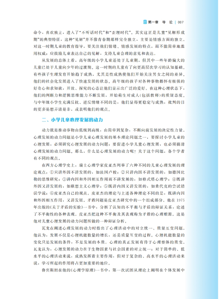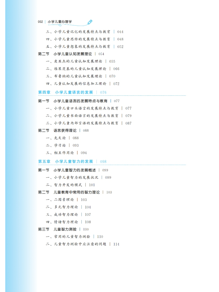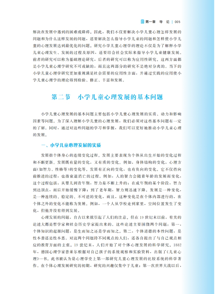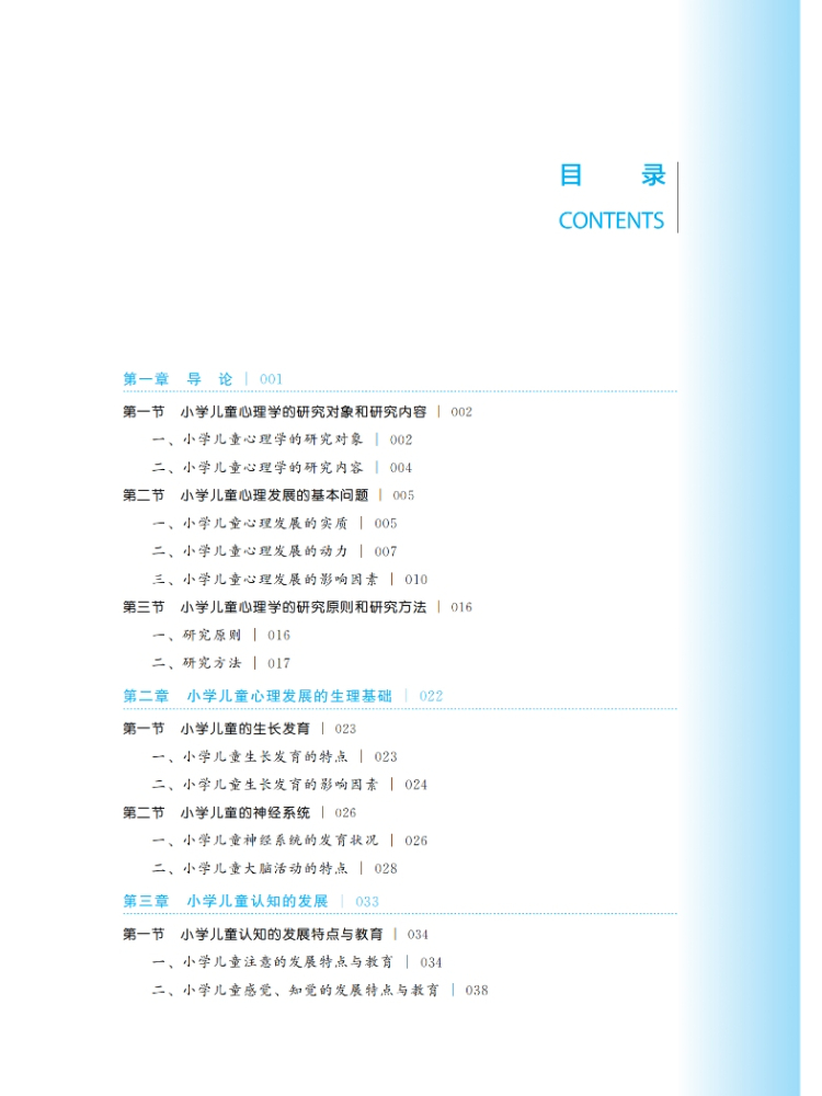 本书为“高等院校小学教育专业融媒体教材”之一,为再版书,原版图书广受市场欢迎。再版图书在新课标的基础上修改而成。本书的主要目的是向读者介绍学前儿童心理发展的基础知识,包括儿童心理发展的基本理论、儿童生理、认知、语言、情感,社会性发展的特点和规律,以及环境因素(包括家庭和家庭以外的因素)对儿童发展的影响等内容。本书各章都由案例引入,内容结构由学习目标、内容、请你思考和拓展阅读构成,其中还插入了“知识窗”小栏目以介绍儿童心理学领域的教育教养实践问题,目的是帮助读者更好地将儿童发展的理论与儿童的教育教养实践联系起来,使读者能真正地理解儿童发展的基本理论,解决教育实践中的实际问题。本书的编写突出知识的系统性、前沿性、实用性和趣味性等特征,强调其可读性与推广性,适合小学教育专业的师生参考阅读。