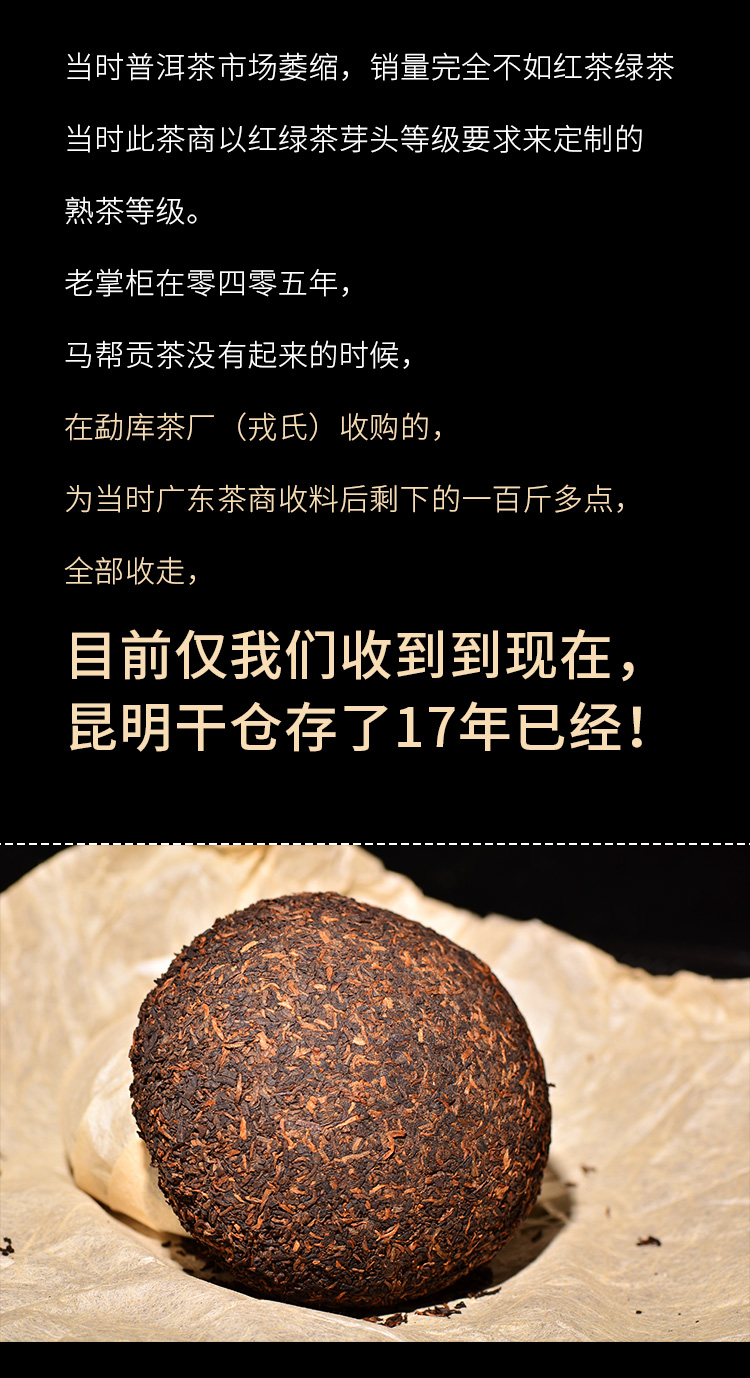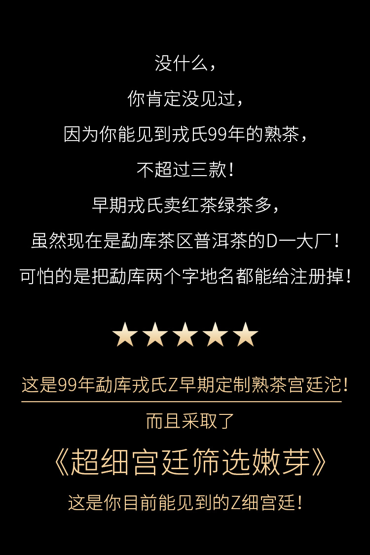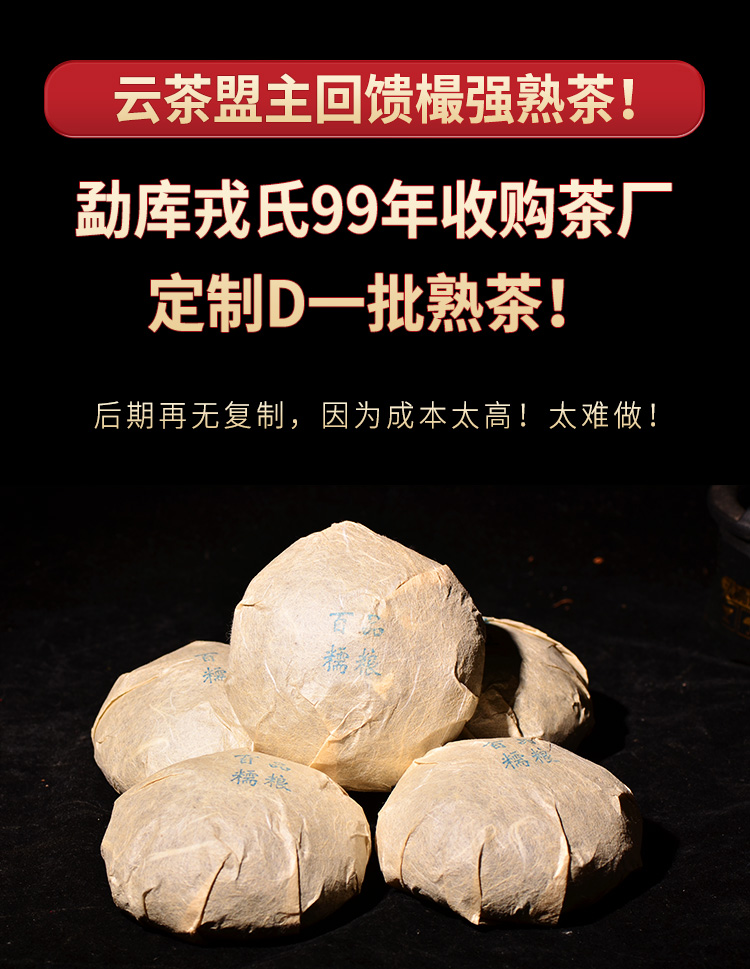 进店必购No.1!限量回馈!勐库戎氏双江茶叶1999年首批熟茶沱 蕞高等级超细宫廷! 老掌柜开仓放粮! 200克/个!