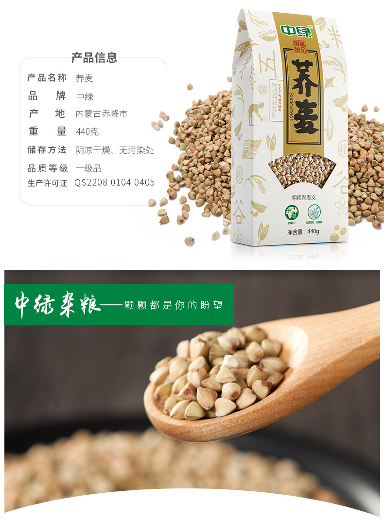中绿 五谷杂粮东北荞麦440g/盒 真空包装新荞麦米 粗粮煮粥米荞麦