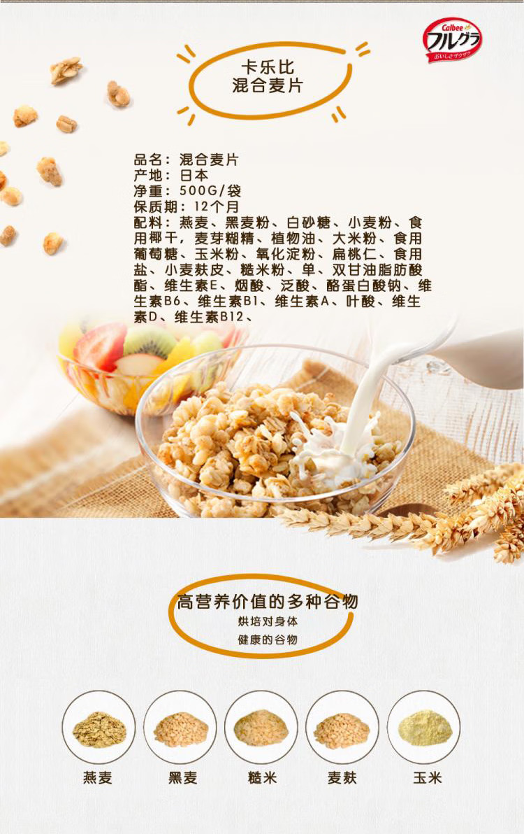 卡乐比水果麦片500g独立包装日本进口Calbee坚果混合早餐即食燕麦