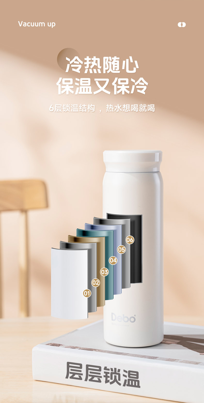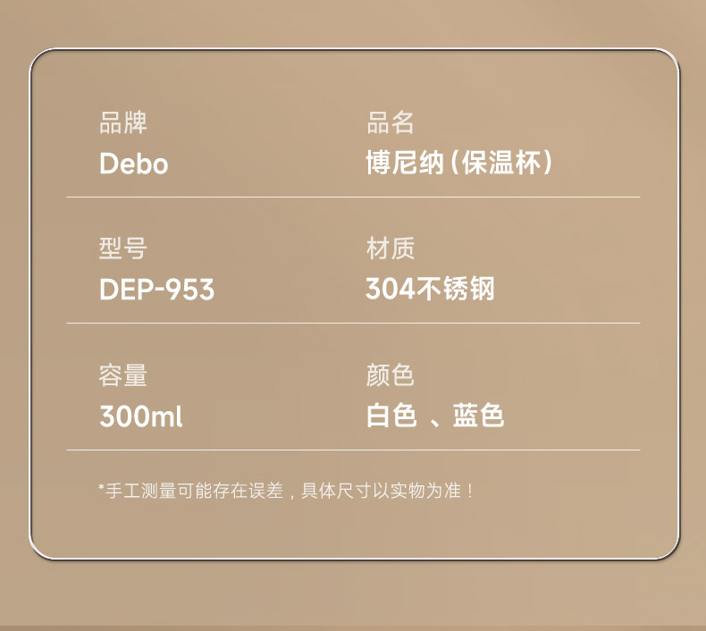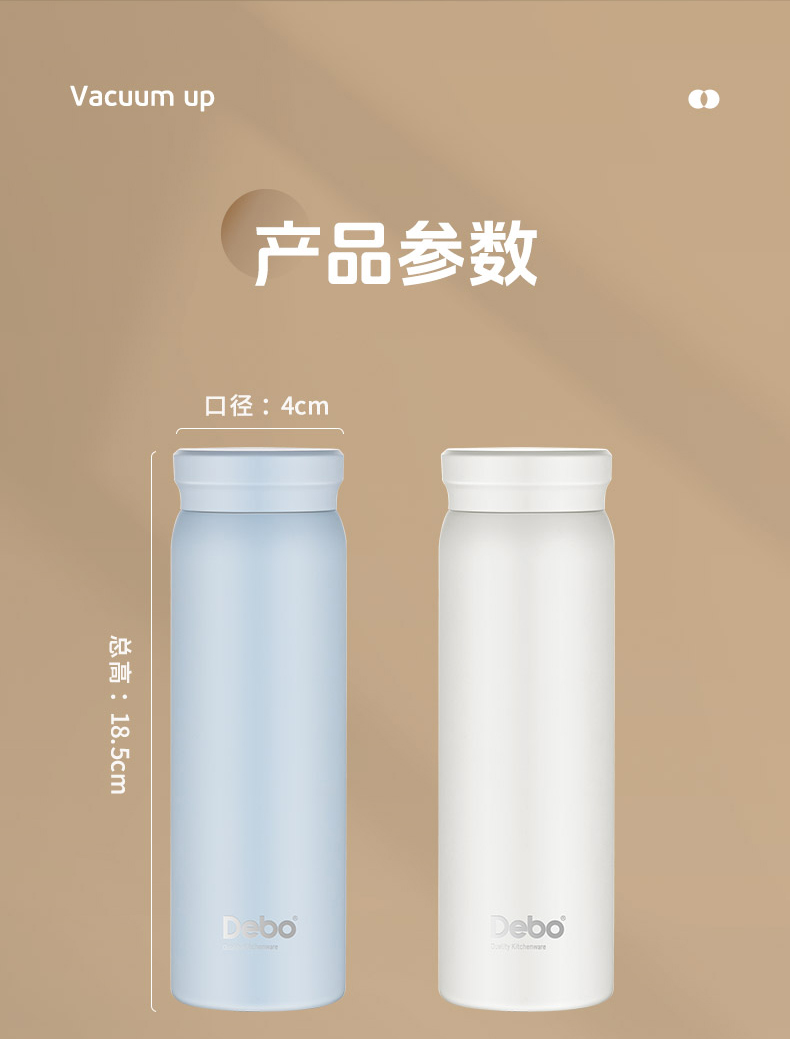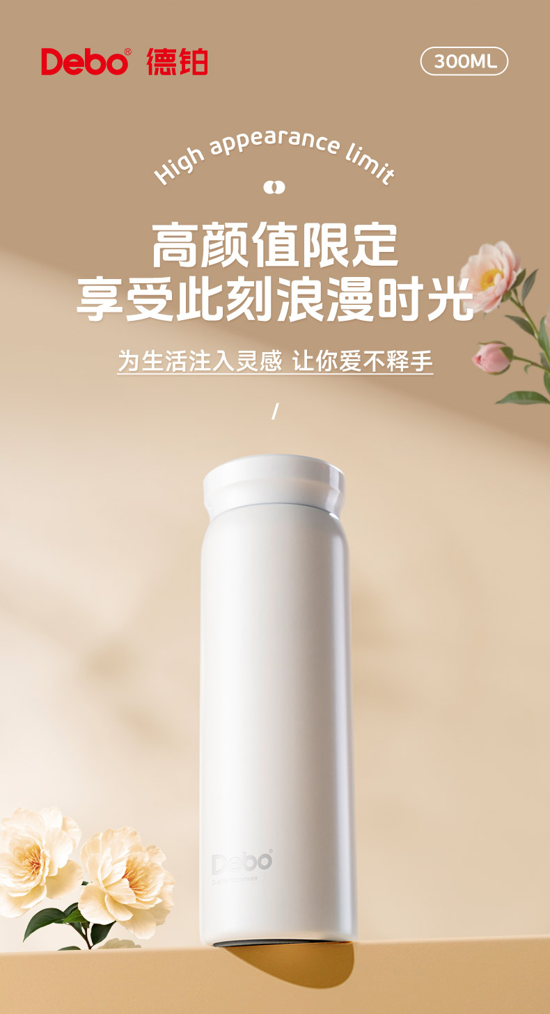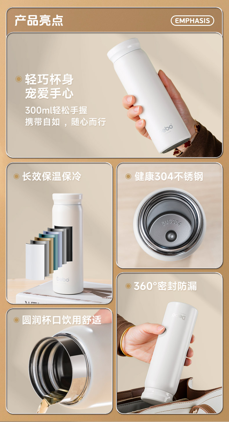 Debo德铂-博尼纳真空保温杯300ml 304不锈钢材质轻盈杯身 保温保冷