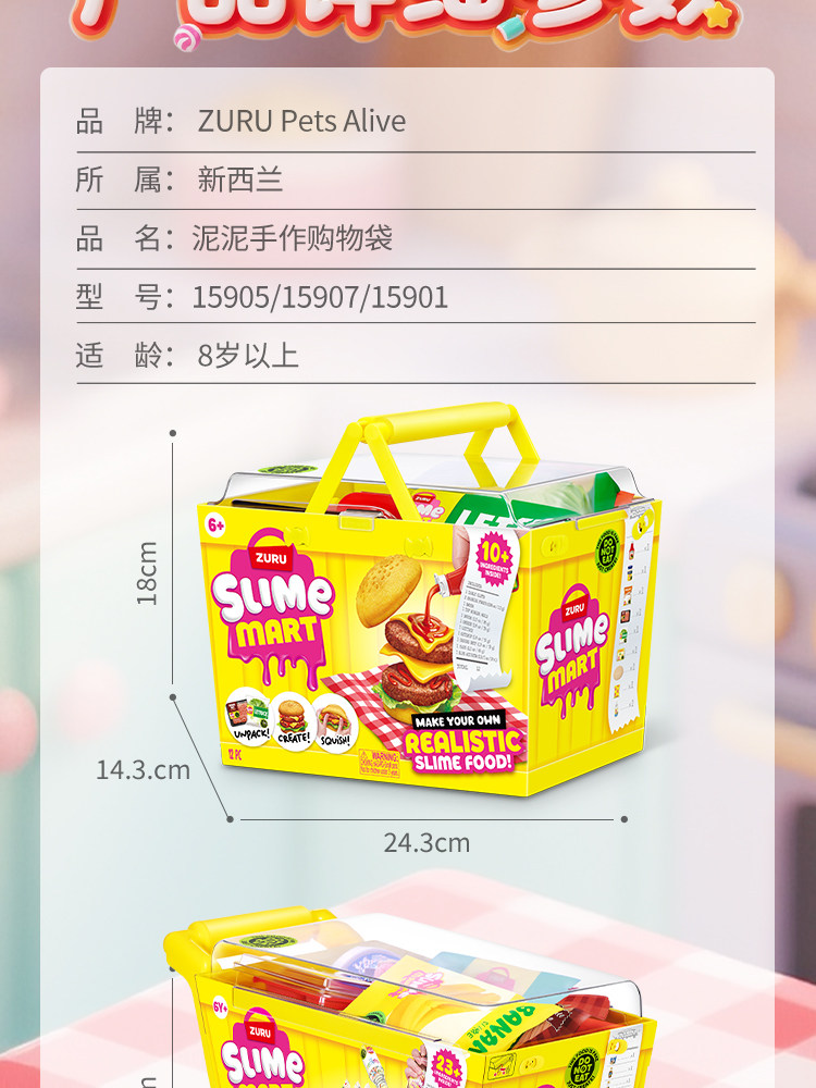 zuru泥泥手作购物车儿童玩具过家家手工捏捏乐玩具亲子烘焙玩具盒