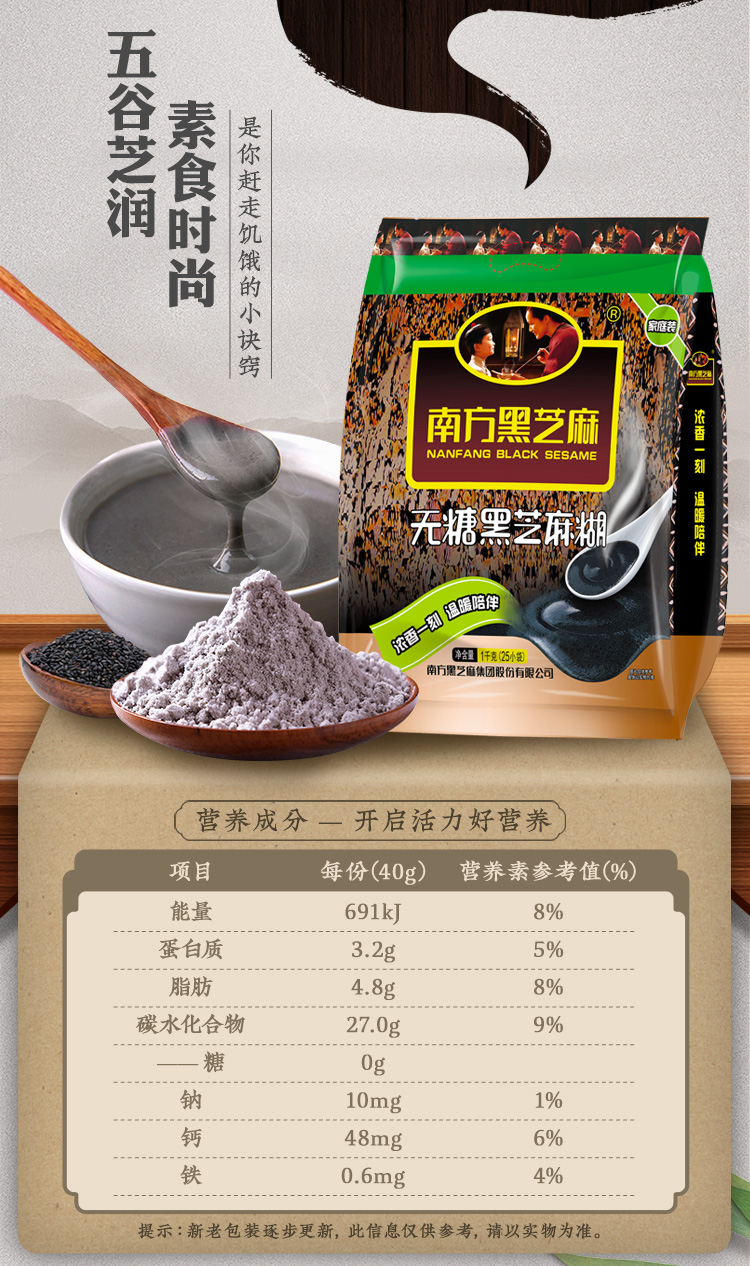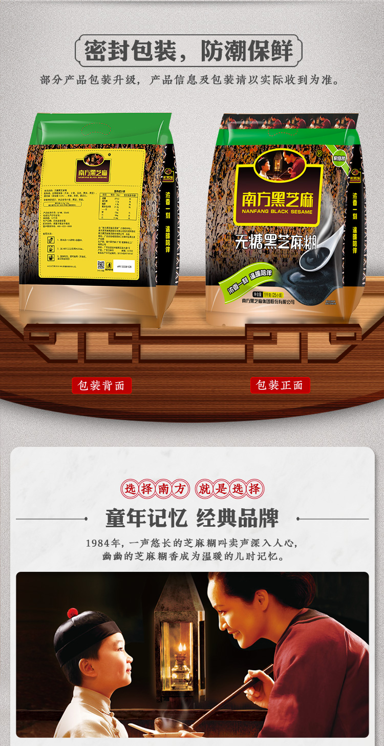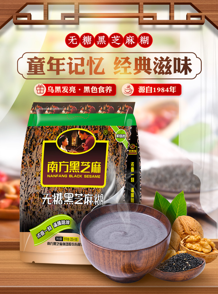 南方黑芝麻糊无糖/经典原味1000g冲饮谷物营养无糖代餐粉送早餐杯组合