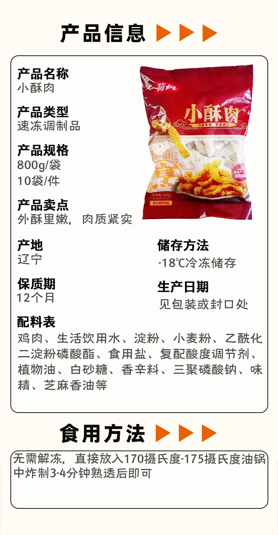 25I荷风小酥肉(鸡肉) 800g/袋 10袋/件