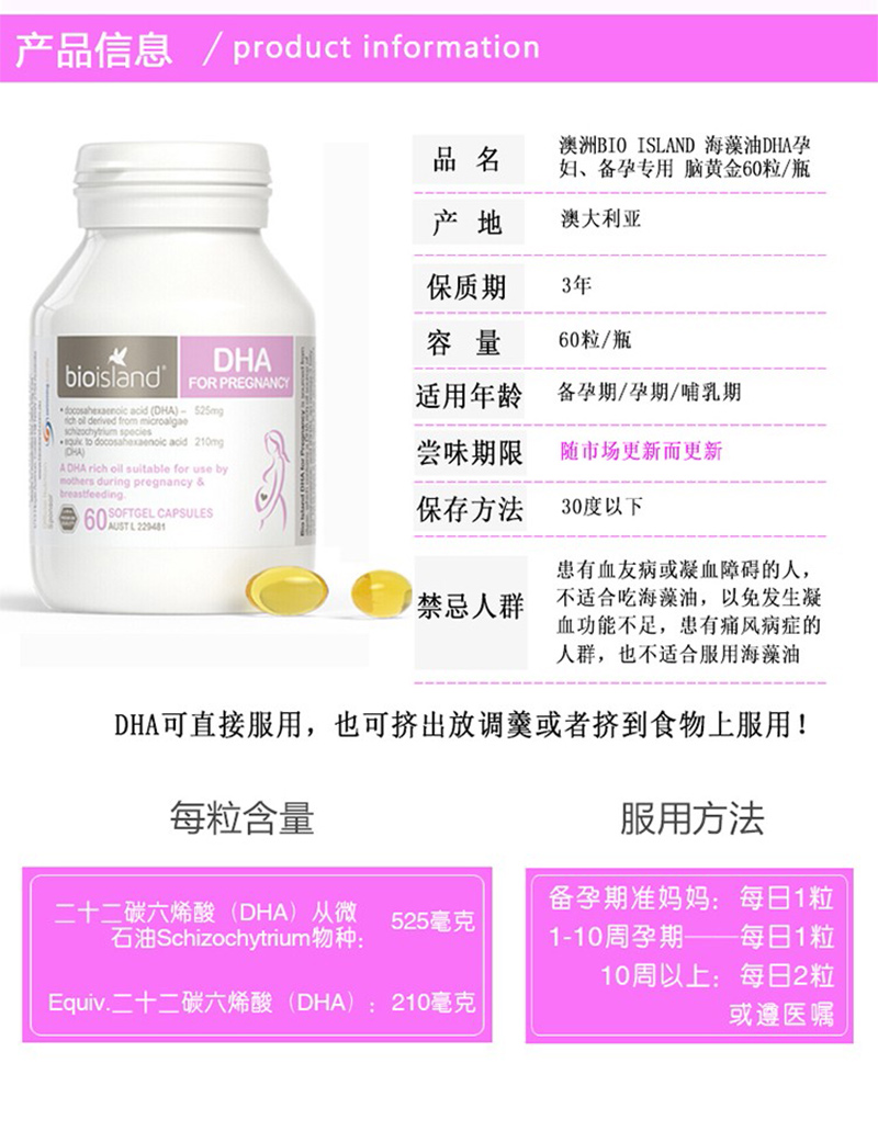澳洲Bio Island 孕妇DHA海藻油60粒