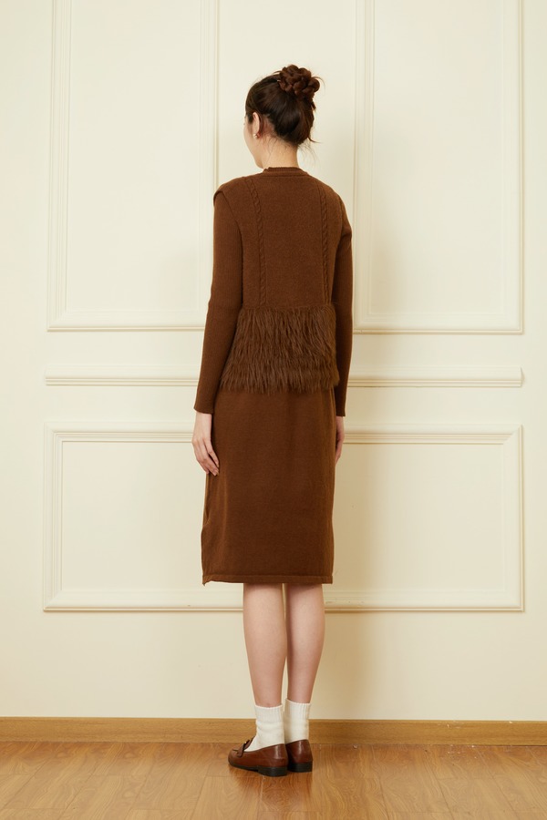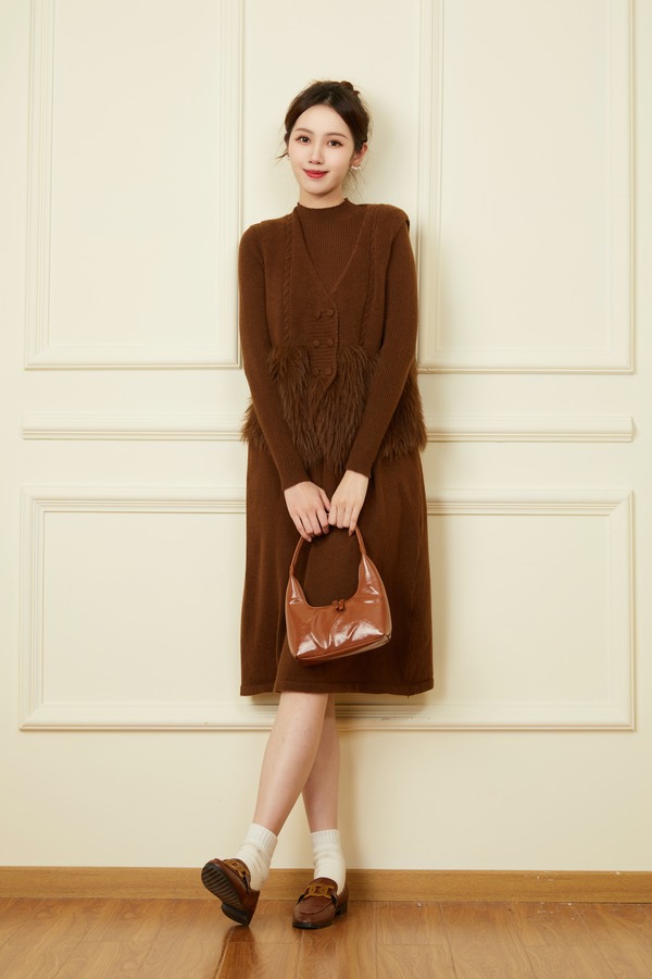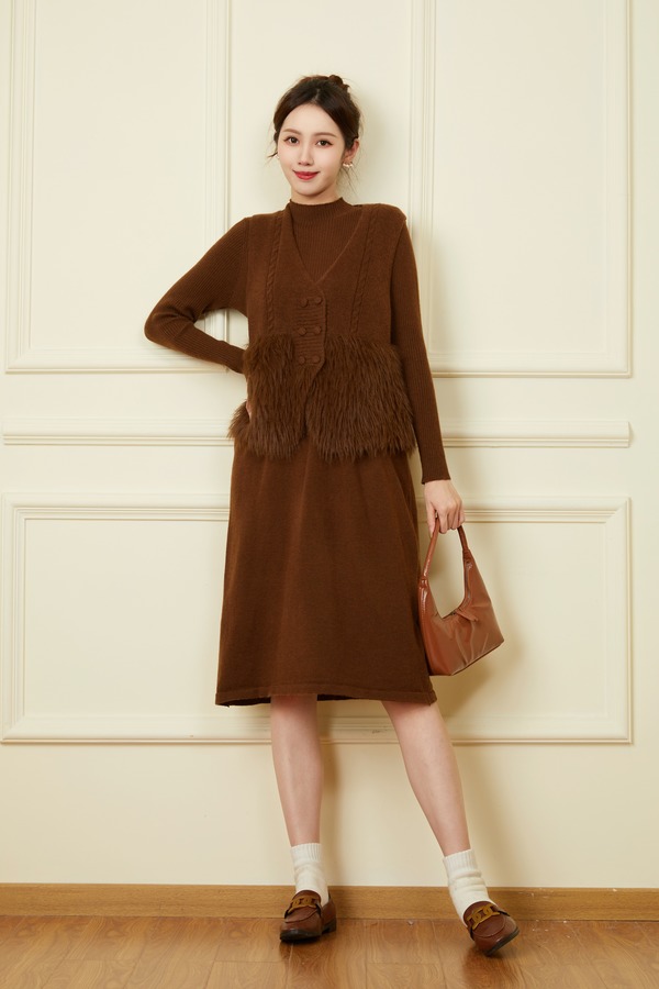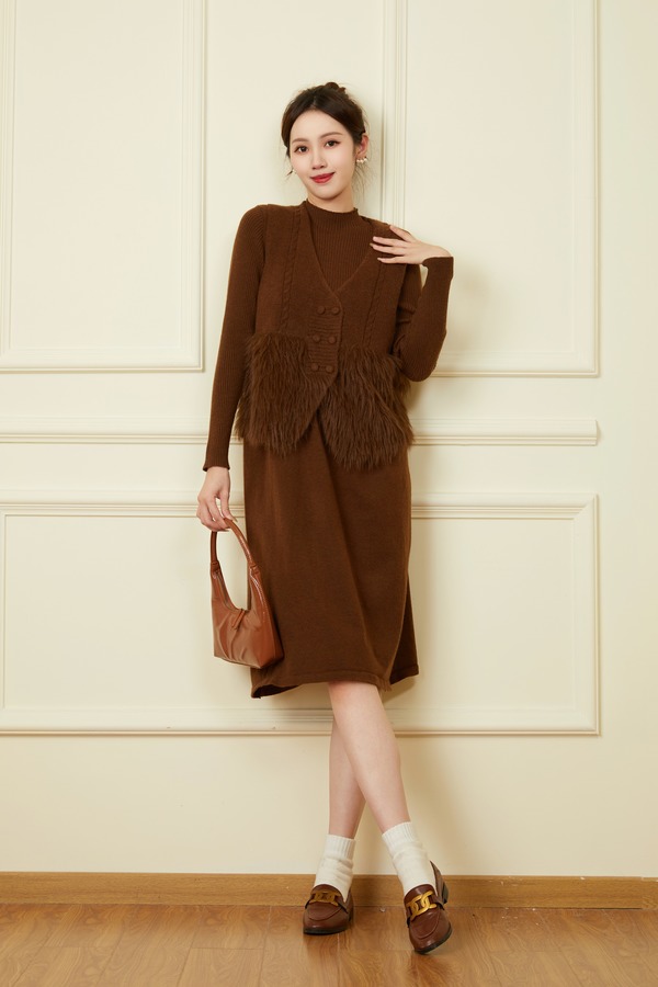 ELLA JADE 气质毛绒马甲连衣裙针织套装 19511