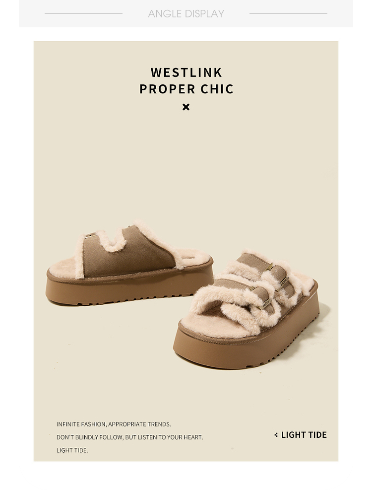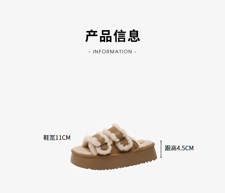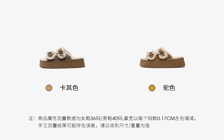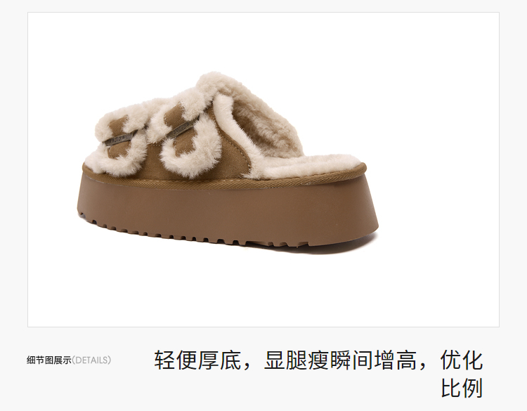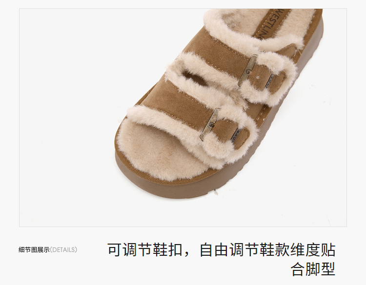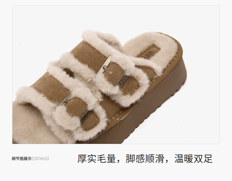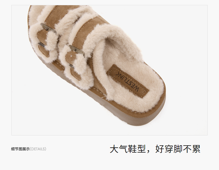 西遇勃肯鞋毛毛拖鞋女加绒新款冬季复古一字增高厚底外穿棉拖D4147843