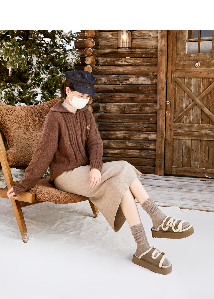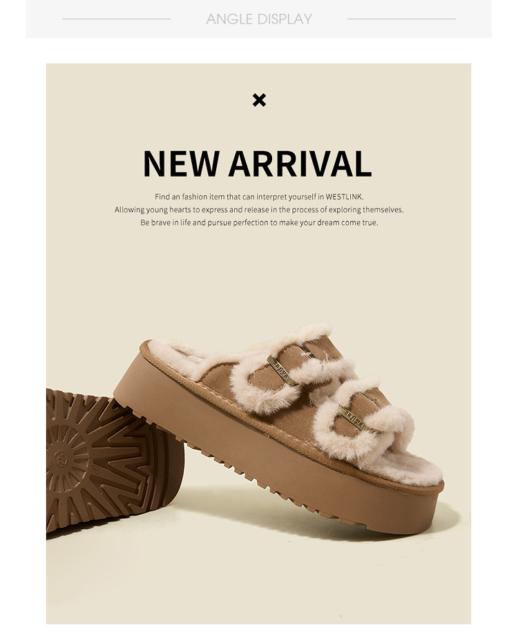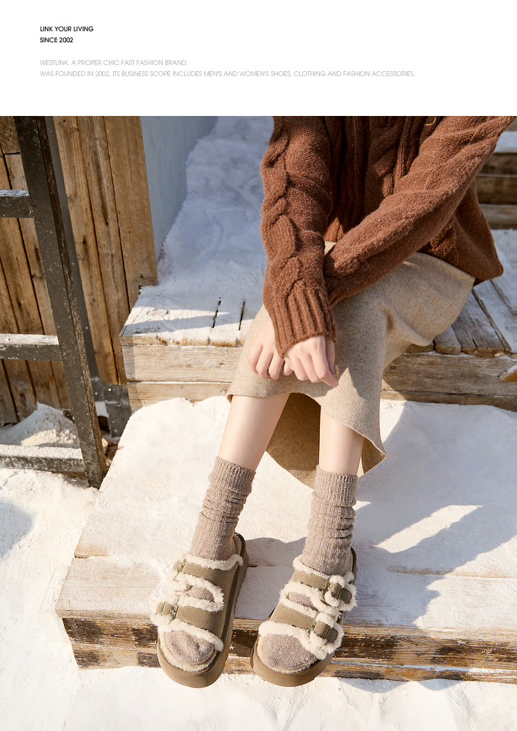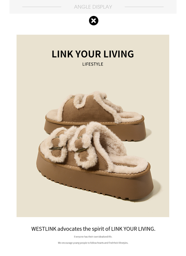 西遇勃肯鞋毛毛拖鞋女加绒新款冬季复古一字增高厚底外穿棉拖D4147843
