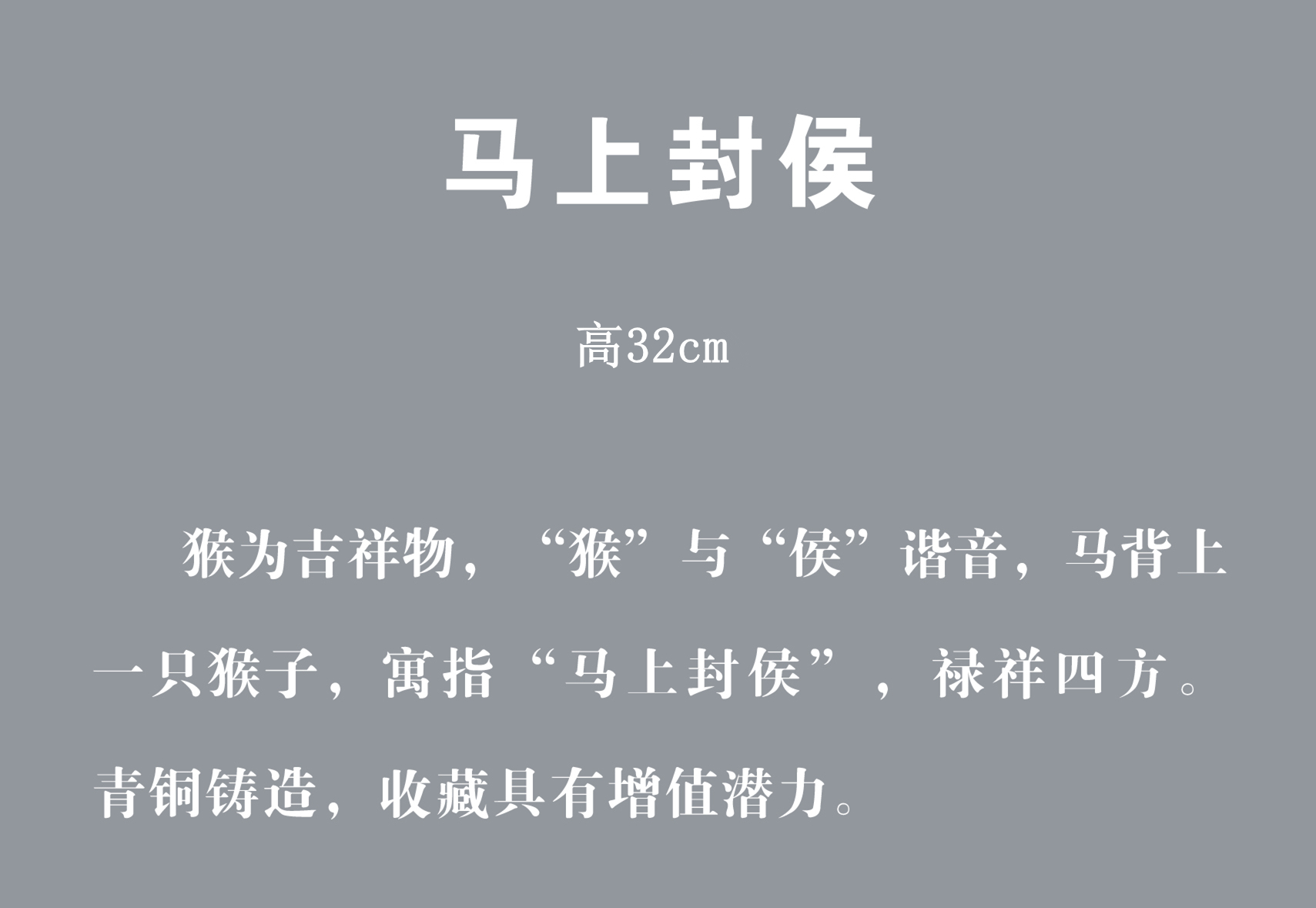 宇达青铜摆件 十二生肖马《马上封侯》创意装饰 家居工艺摆件 高32cm