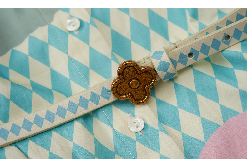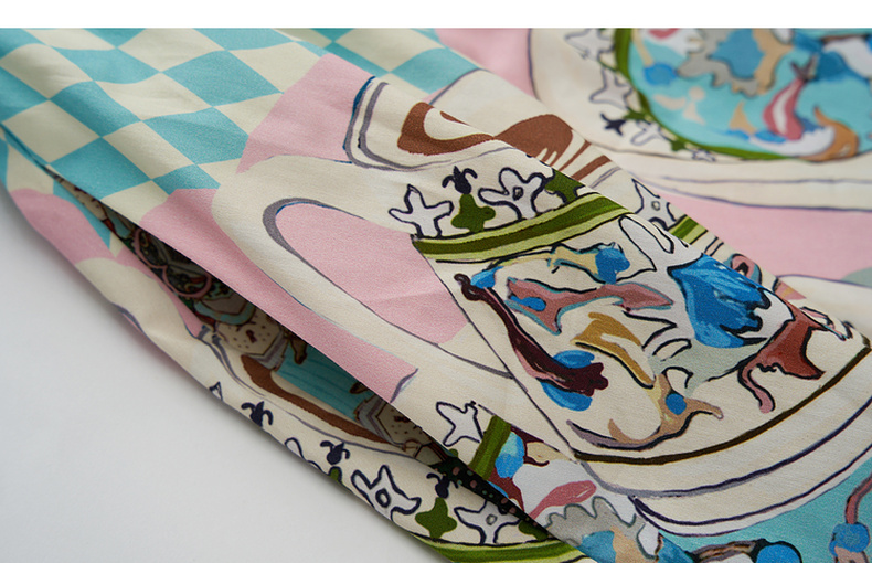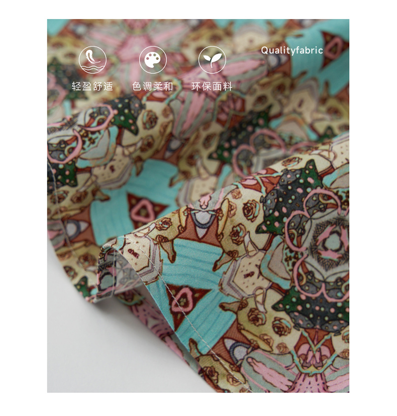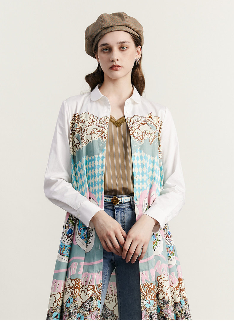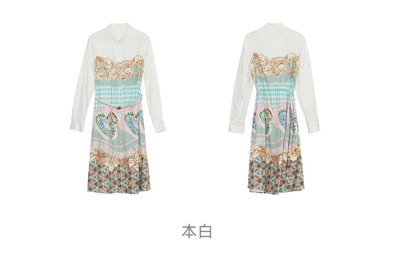谜底衬衫式连衣裙长袖2023秋季新款复古主题印花中长裙233ML1141
