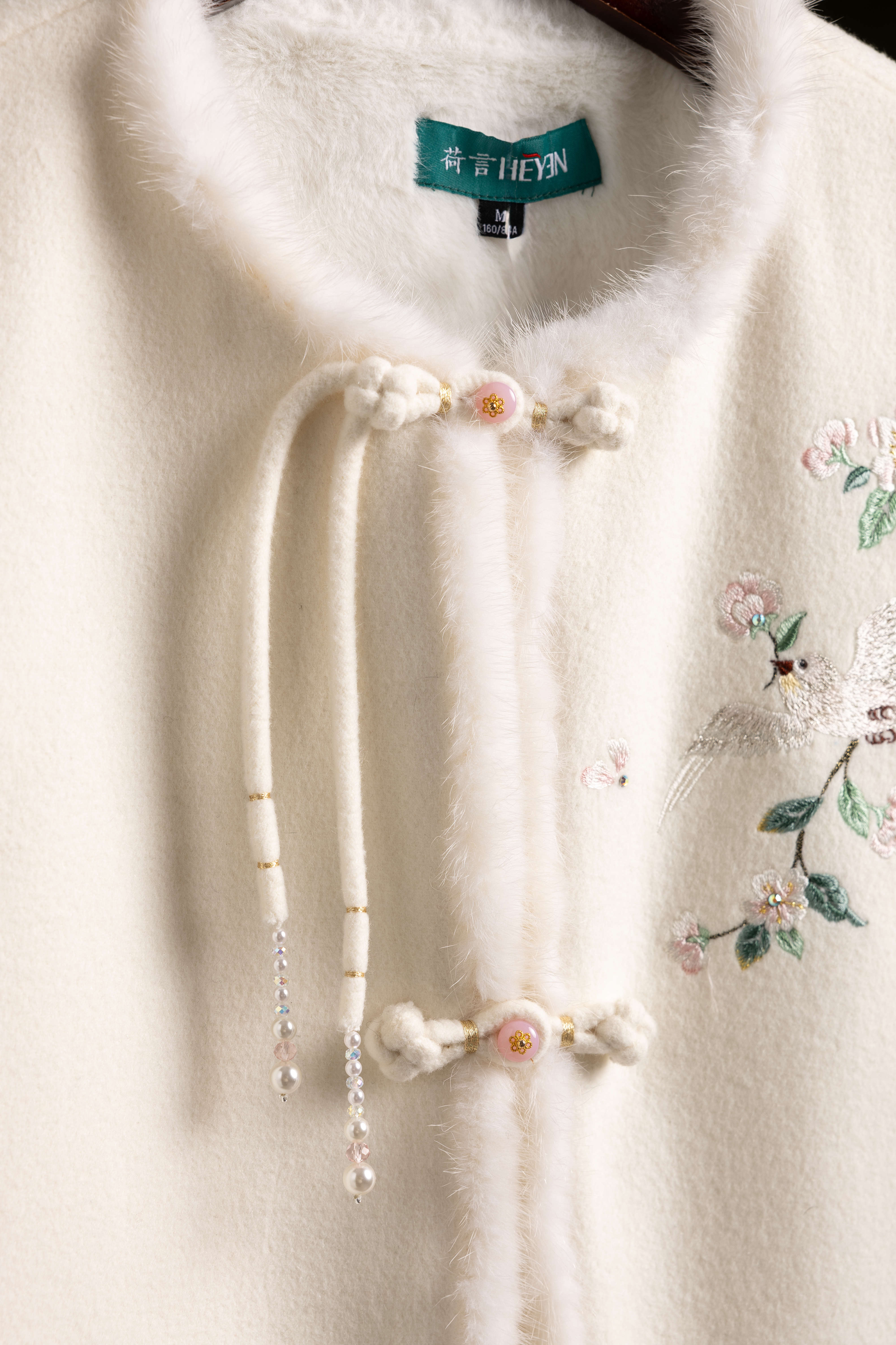 荷言HEYEN 堂前雪燕 白色澳毛羊绒手工刺绣夹棉马甲秋冬高定 商品图2