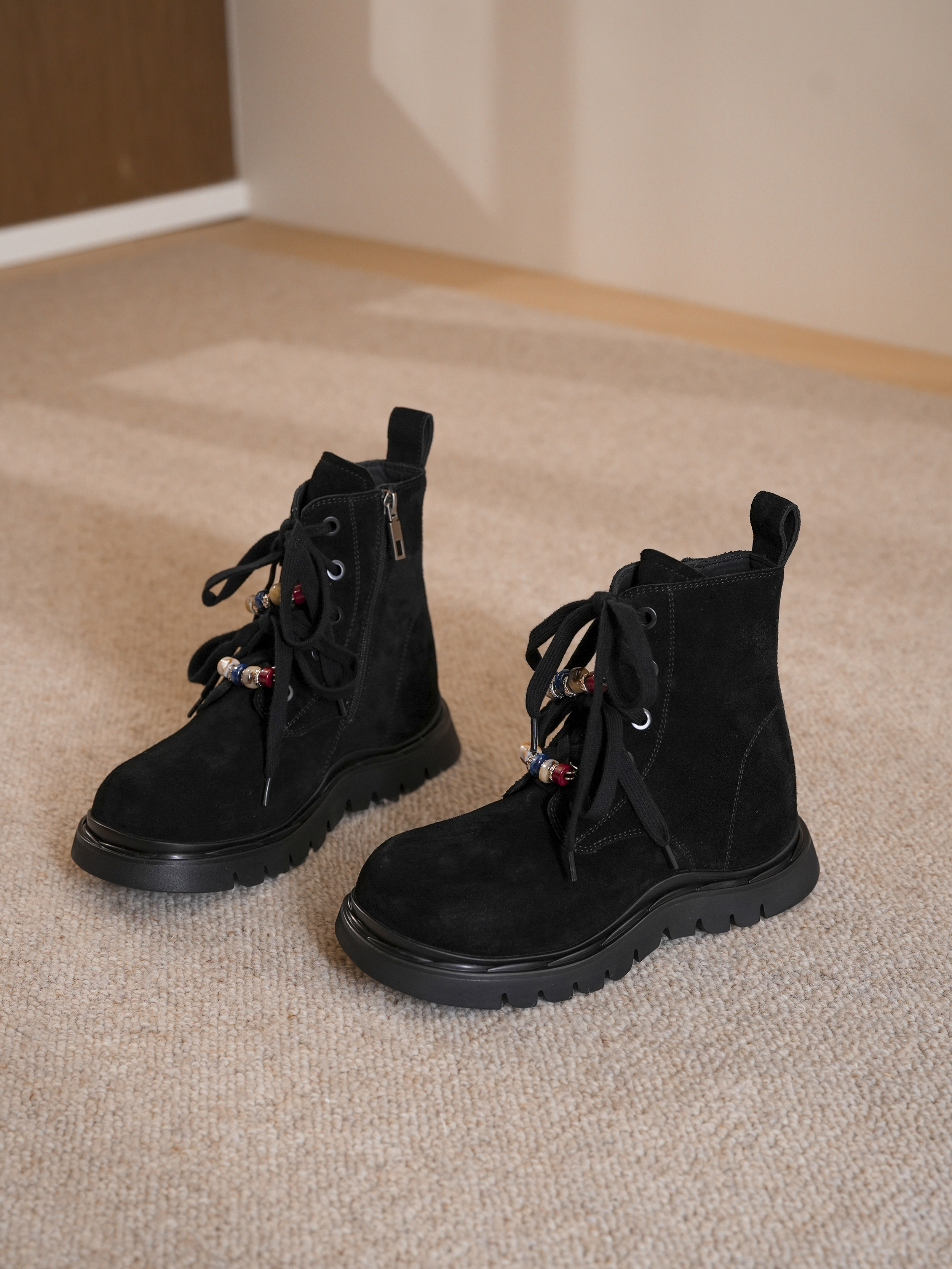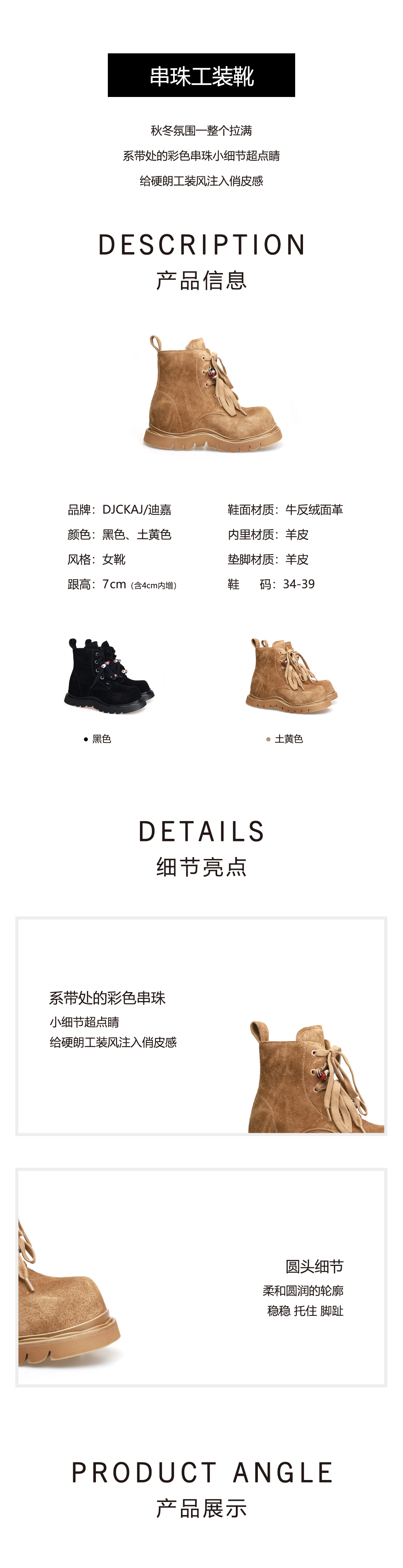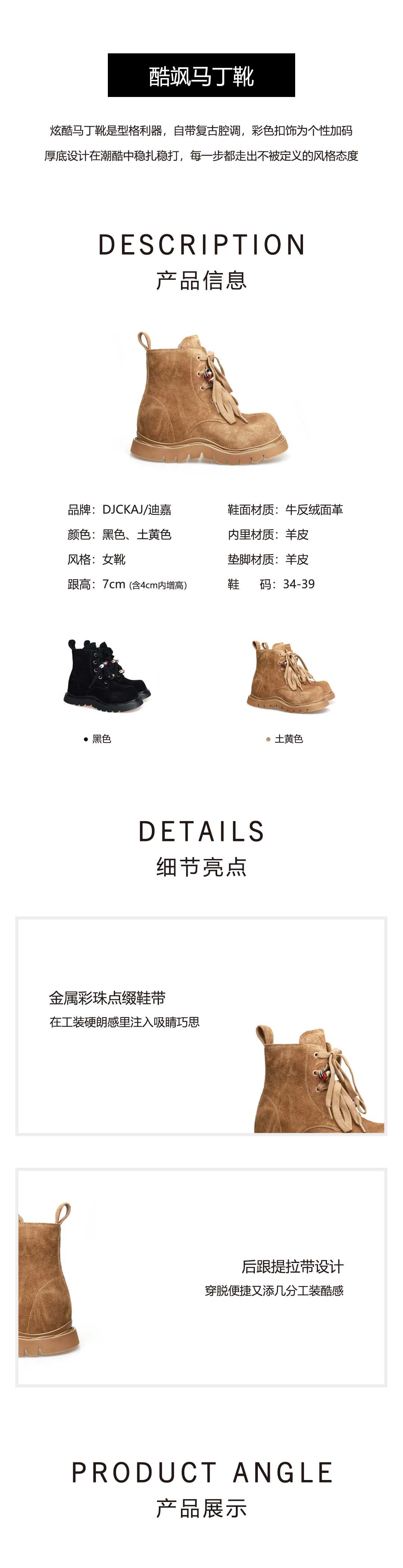 豪麟名鞋迪嘉女鞋马丁靴牛反绒面革DJHJA52WN011黑色
