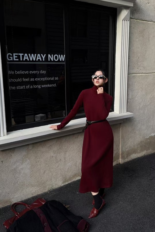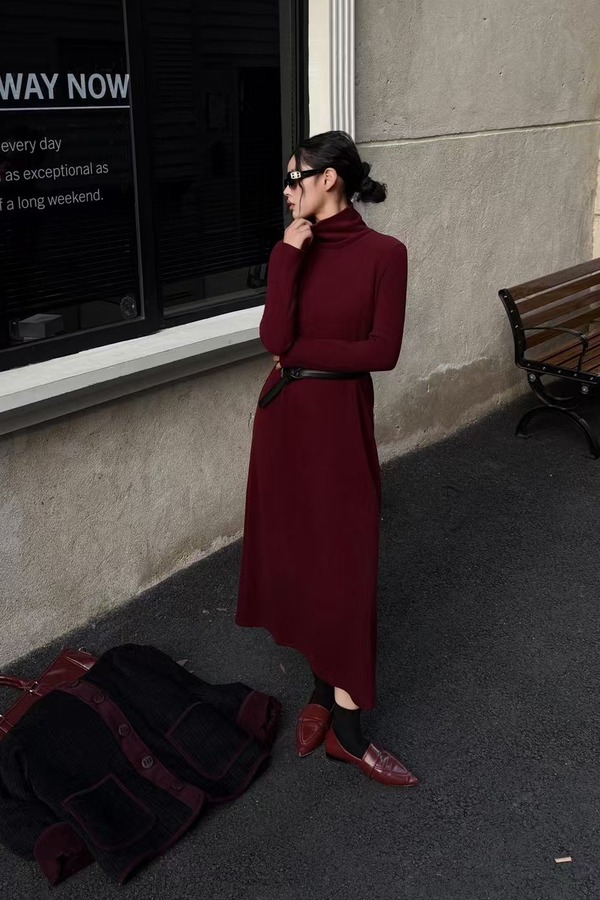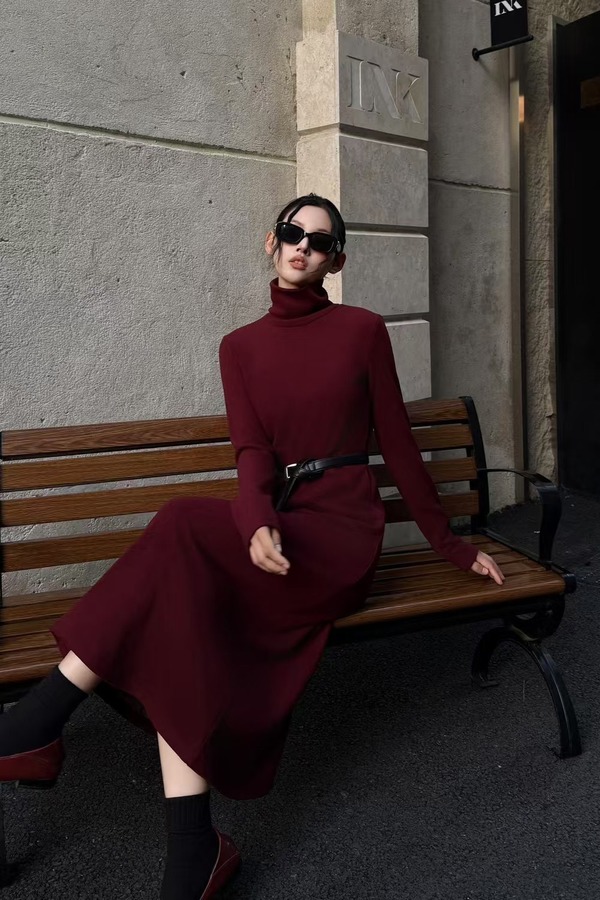 LNNNS 法式气质高领端正显瘦磨毛连衣裙 21901