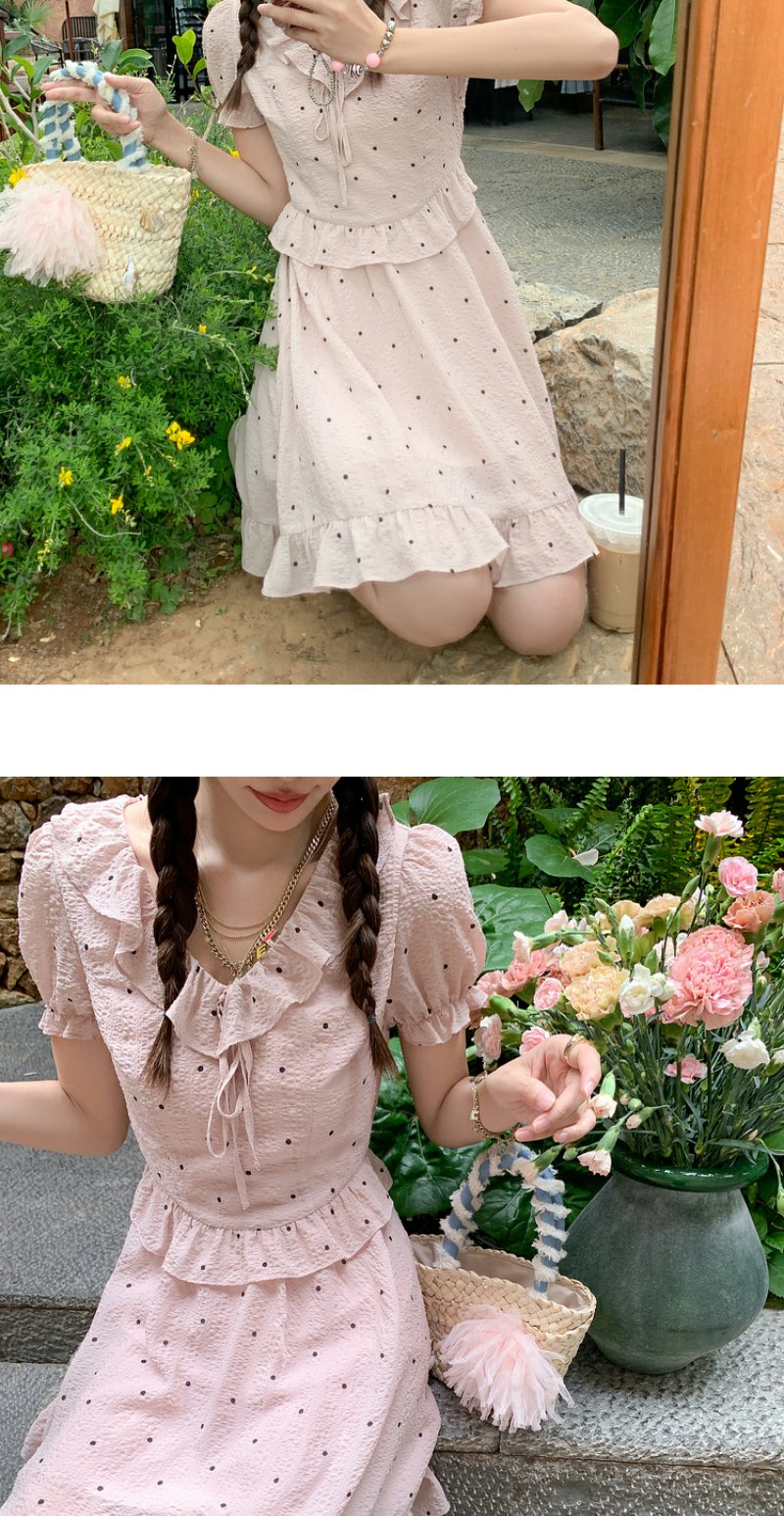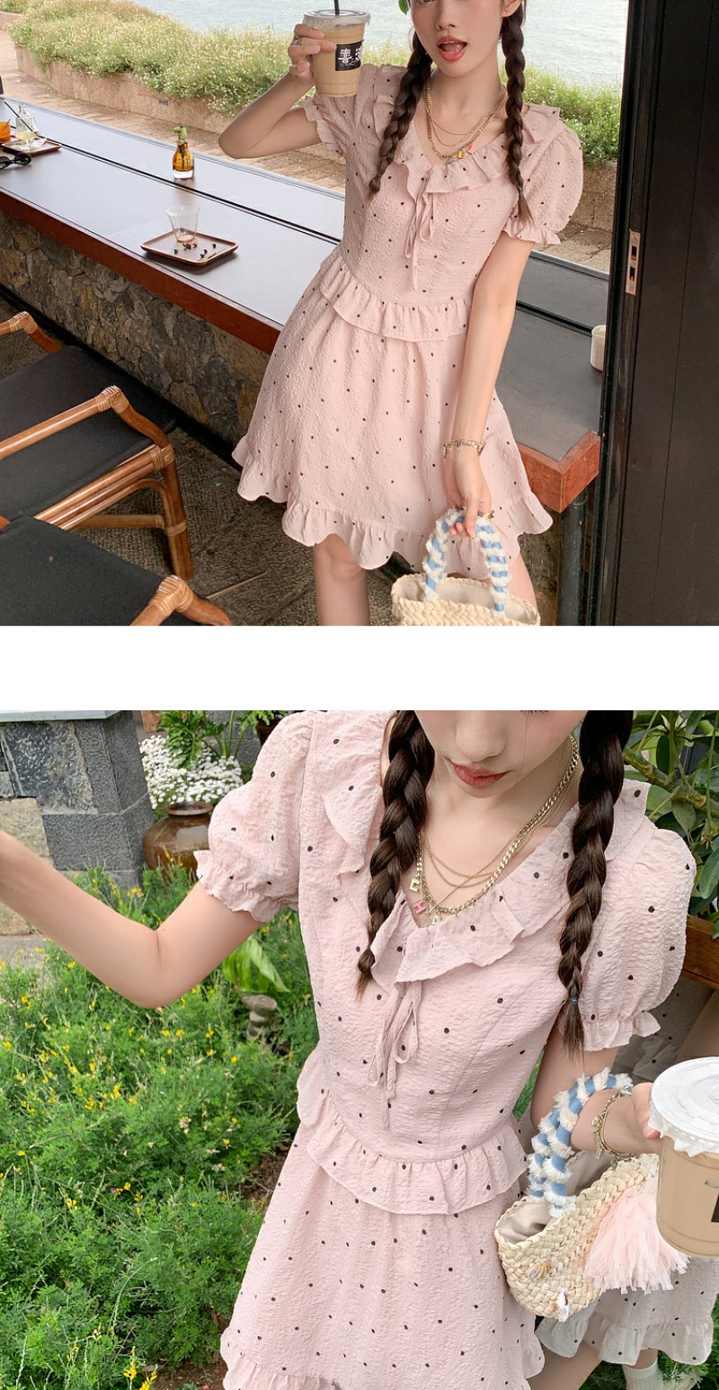 【169元任选2件】最后一波现货!【梦幻少女心】粉色波点短连衣裙