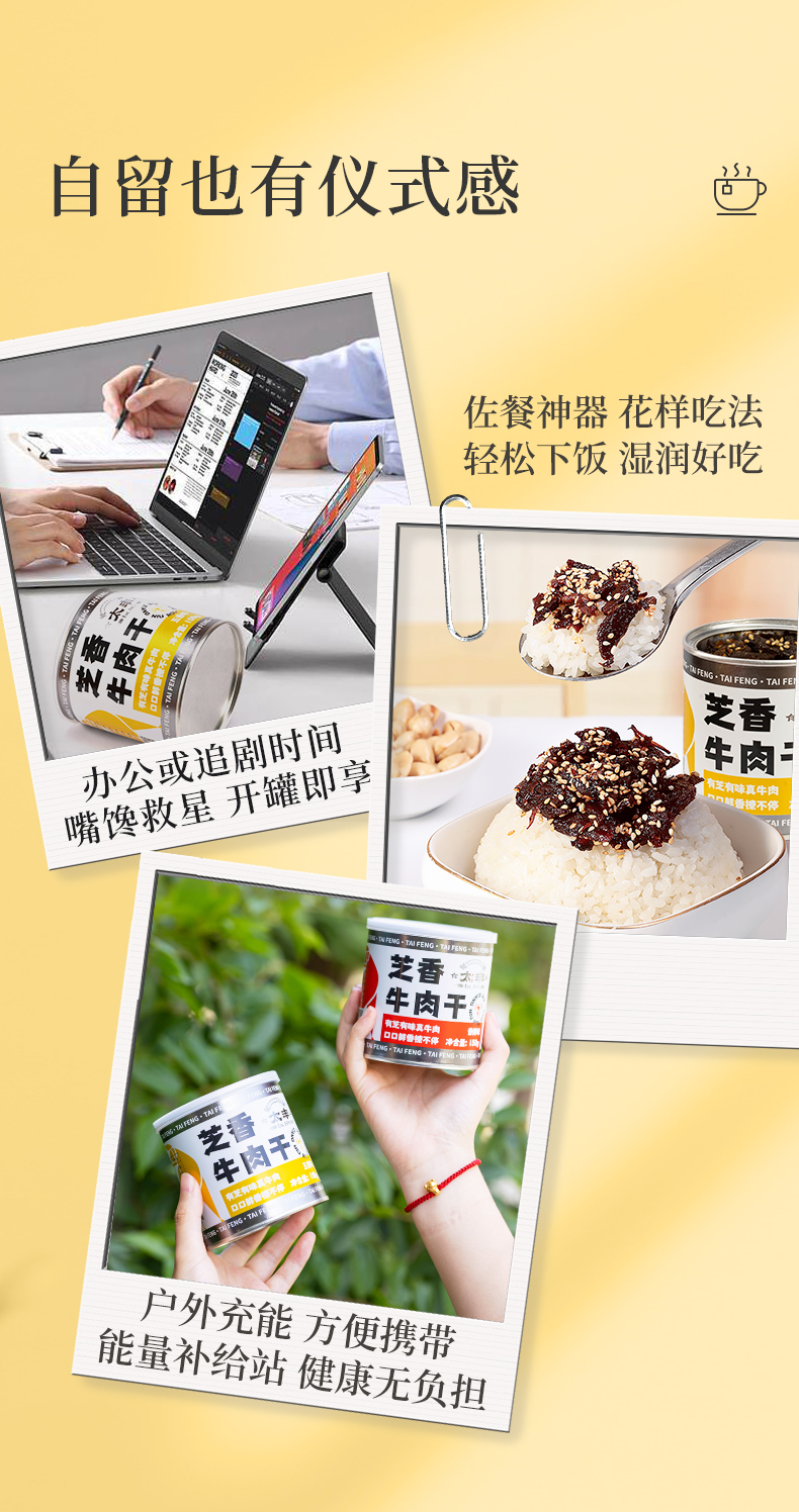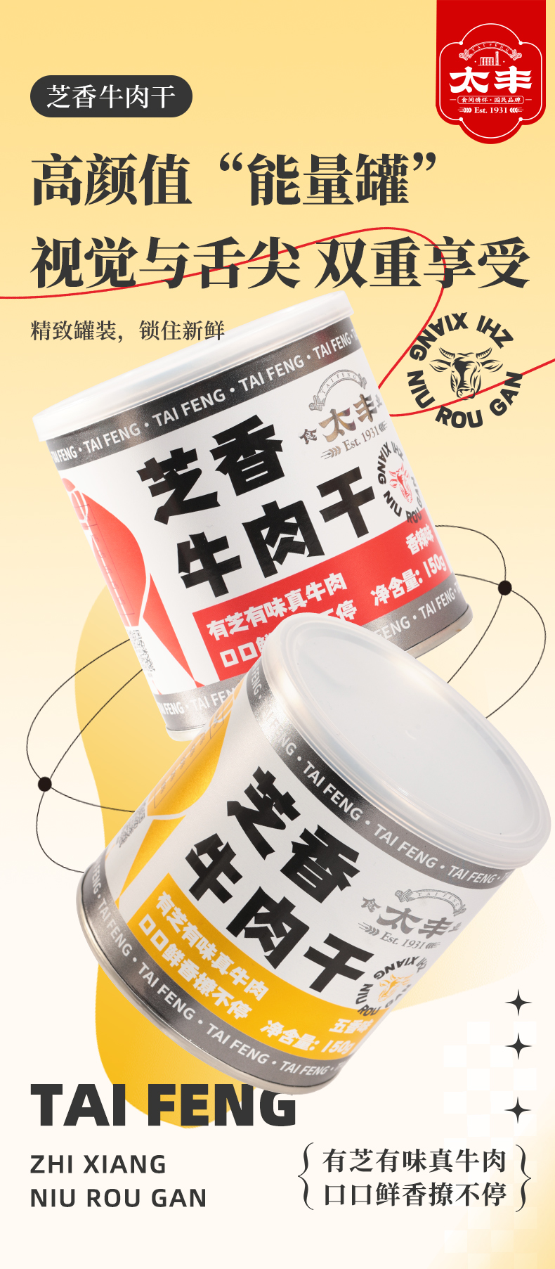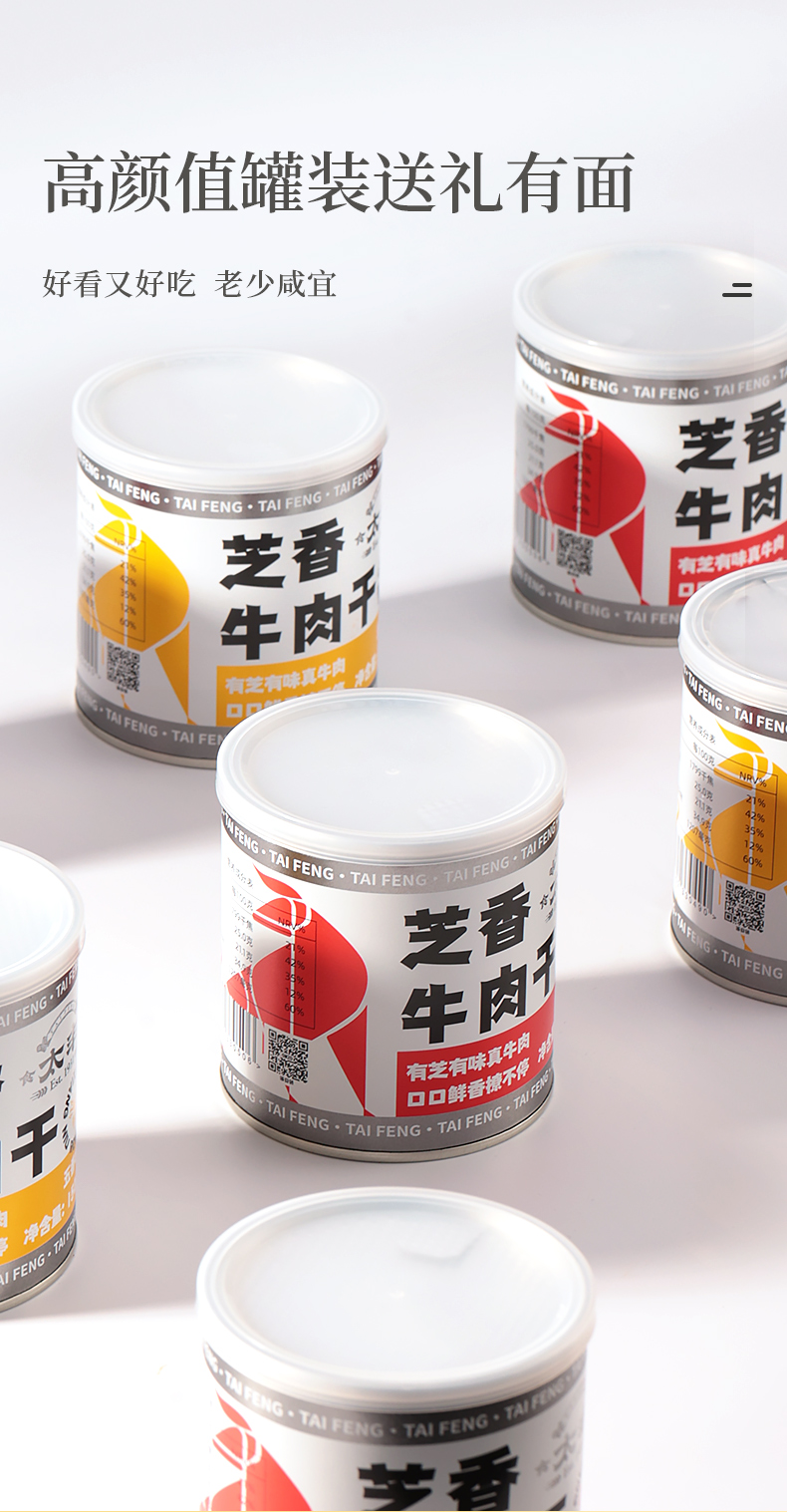太丰芝香牛肉干零食五香味小吃办公室休闲下饭即食牛肉2罐/3罐