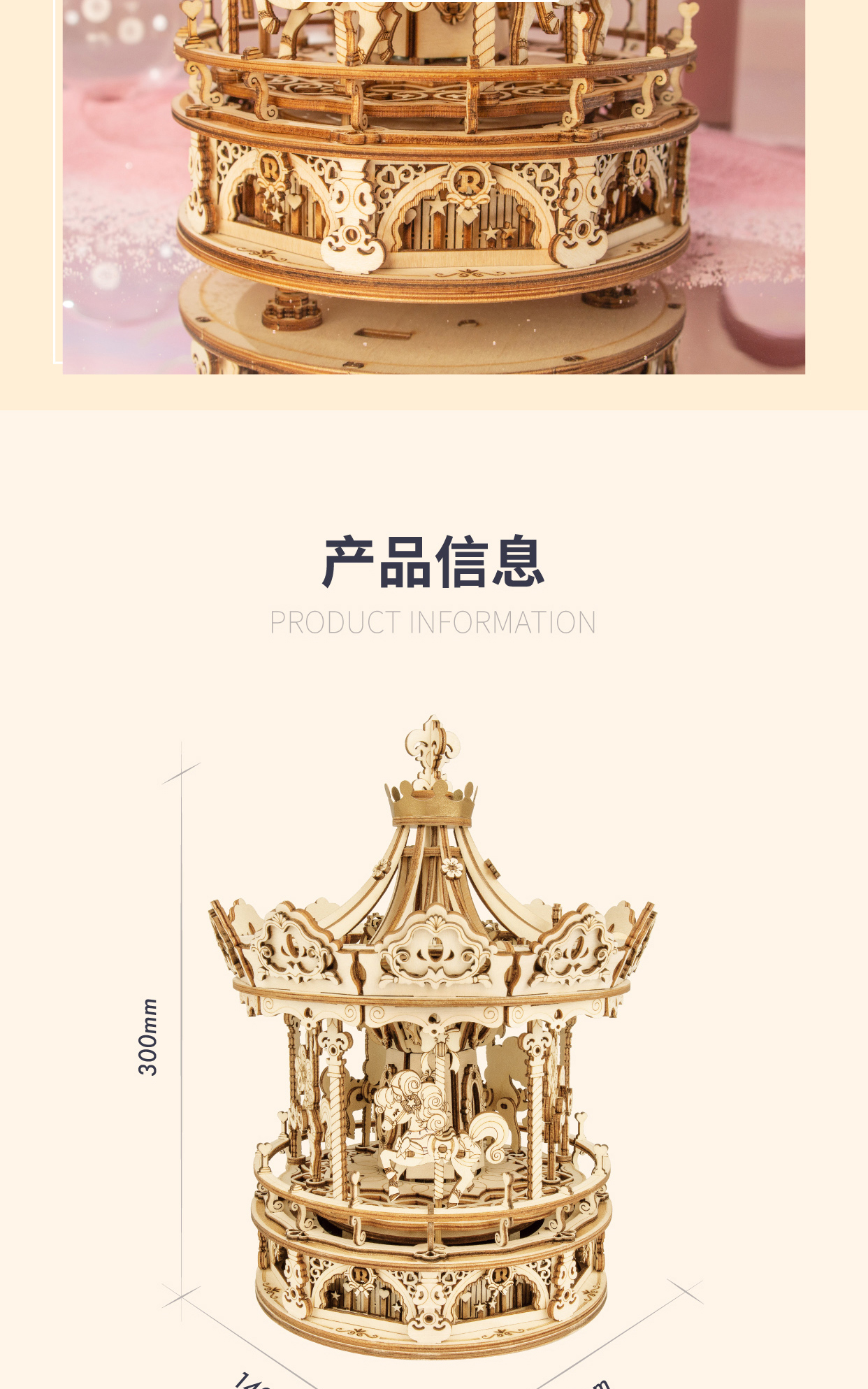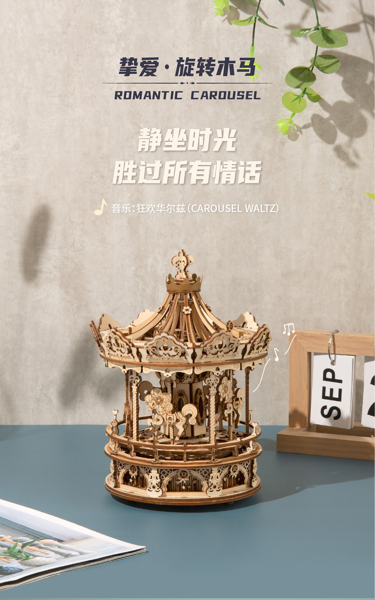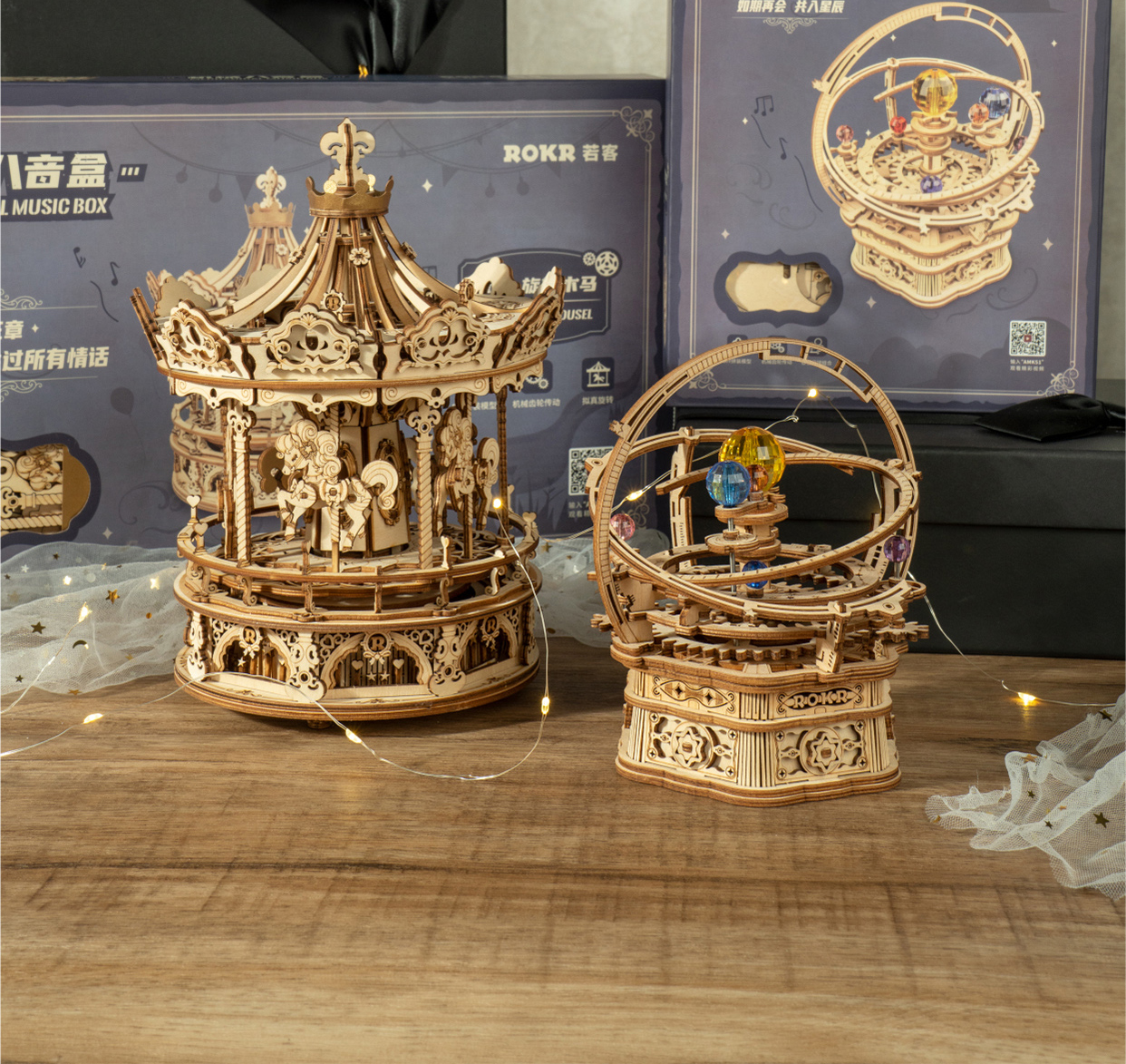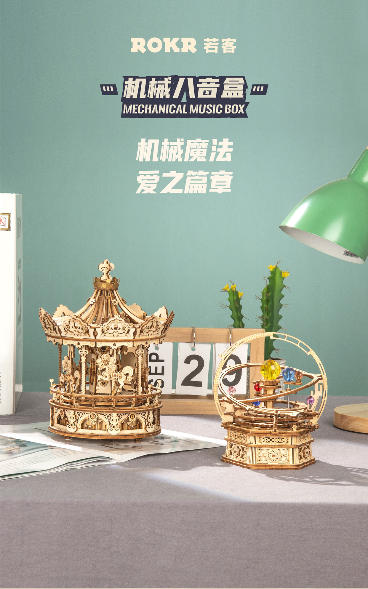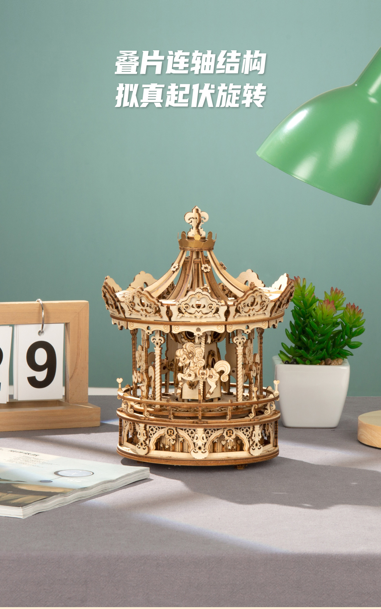 【机械魔法八音盒 多面镂空可动】ROKR若态创意八音盒diy手工制作 摩天轮/旋转木马等木质拼装音乐盒玩具