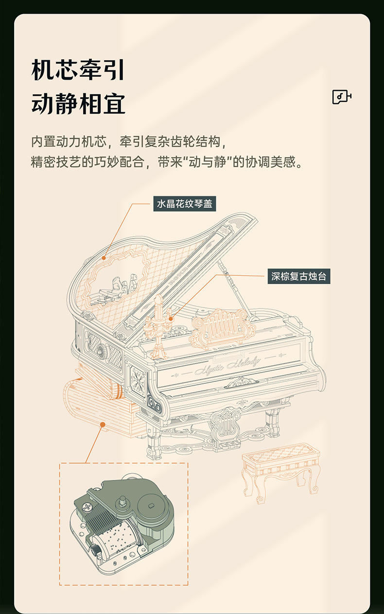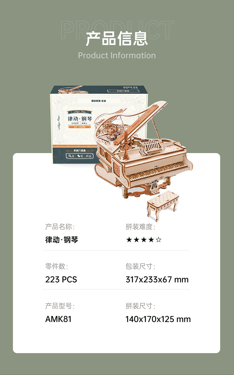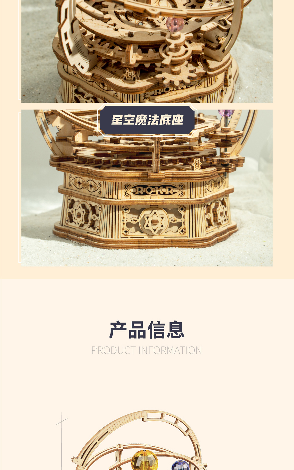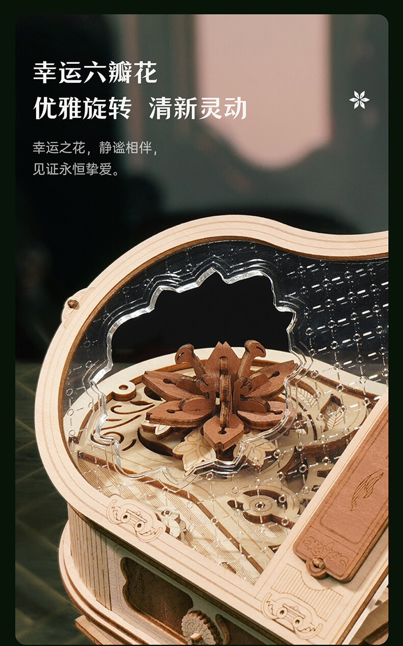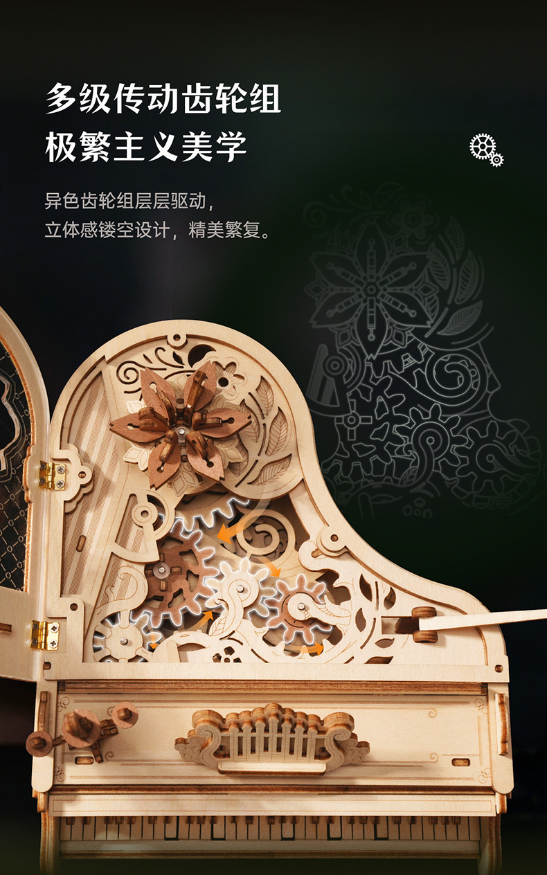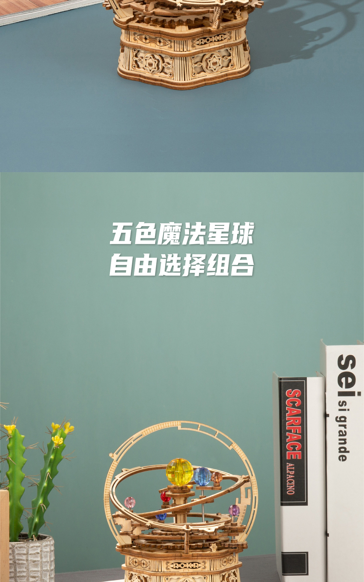 【机械魔法八音盒 多面镂空可动】ROKR若态创意八音盒diy手工制作 摩天轮/旋转木马等木质拼装音乐盒玩具