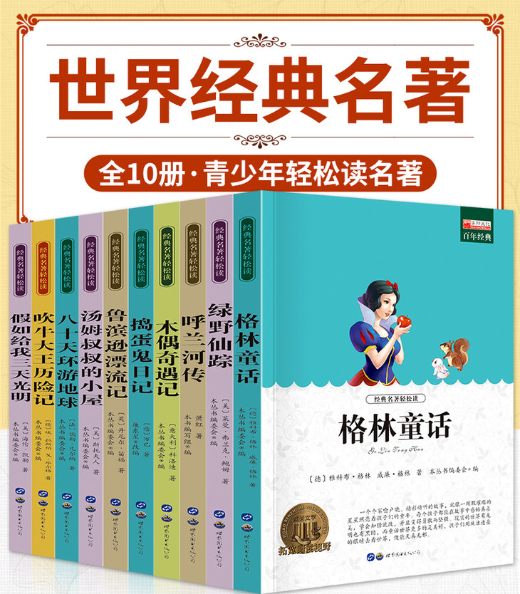 经典名著第1辑组合三 (格林+绿野+呼兰河+木偶+捣蛋鬼+鲁滨逊+汤姆叔叔+八十天+吹牛+假如)全10册