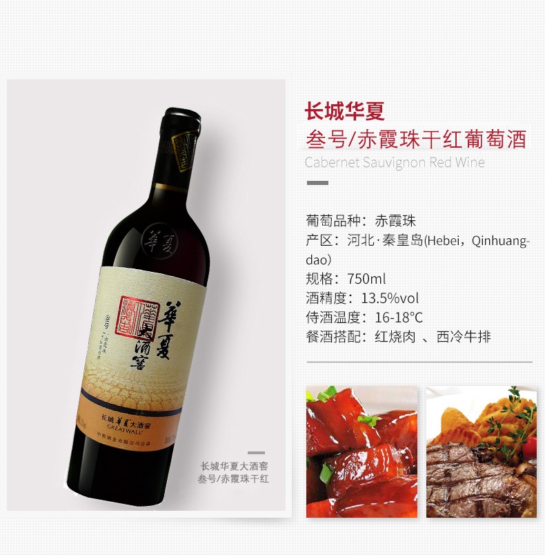 长城大酒窖叁号赤霞珠750ml*2支