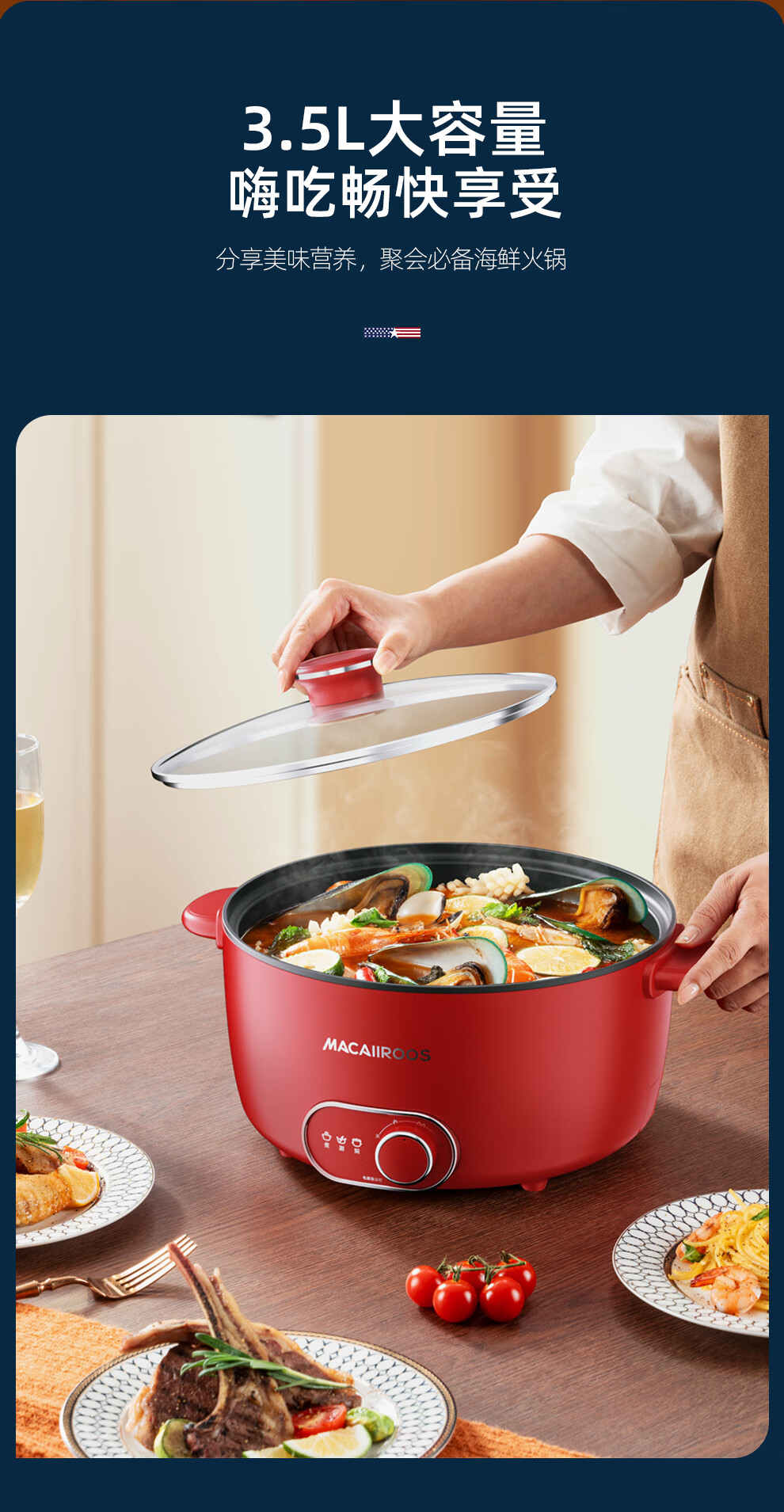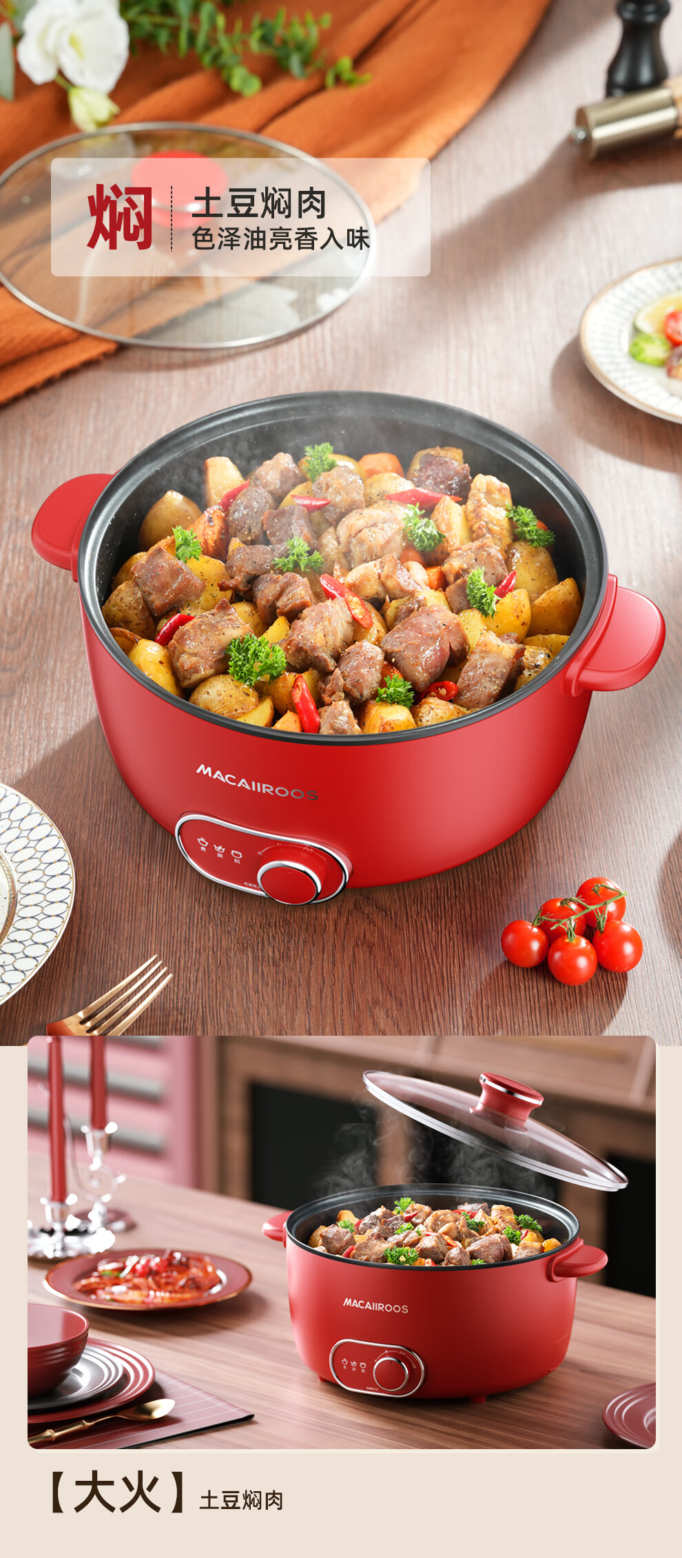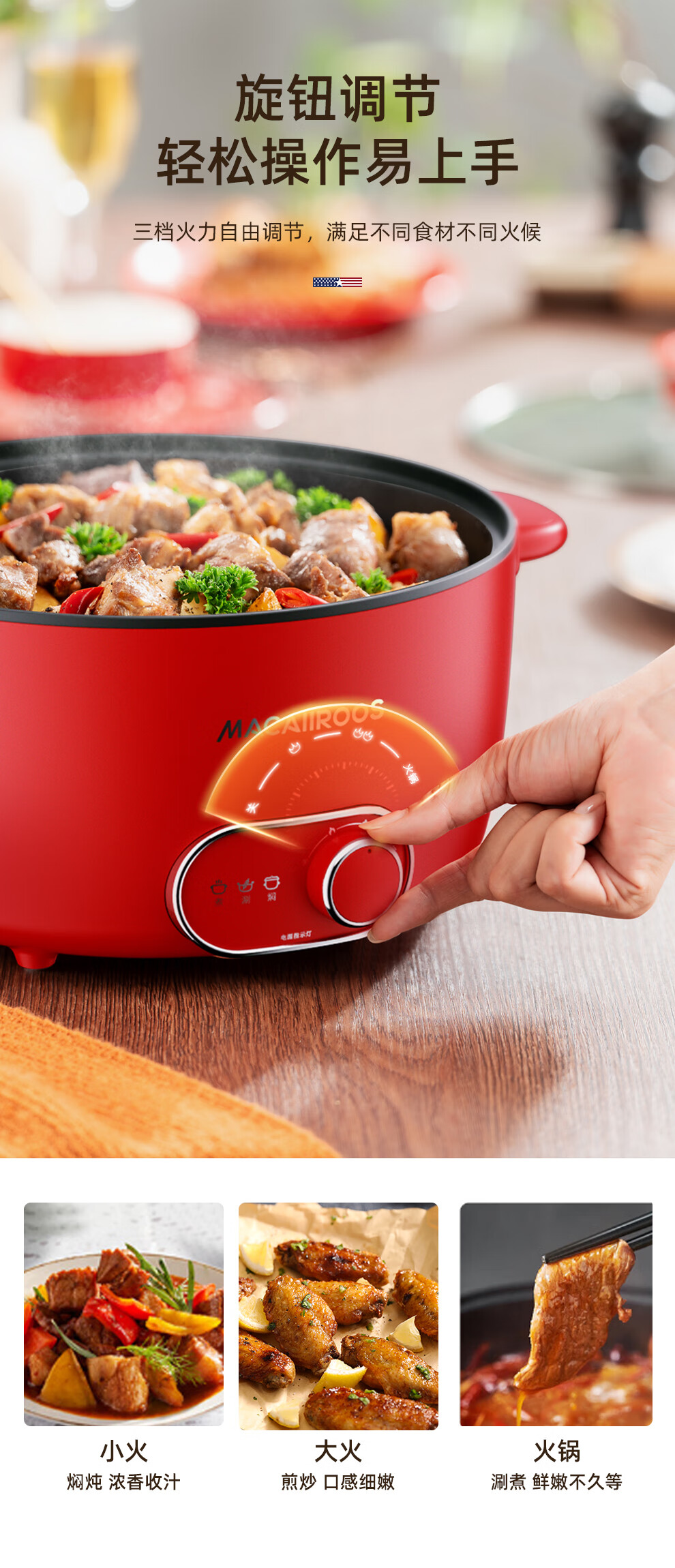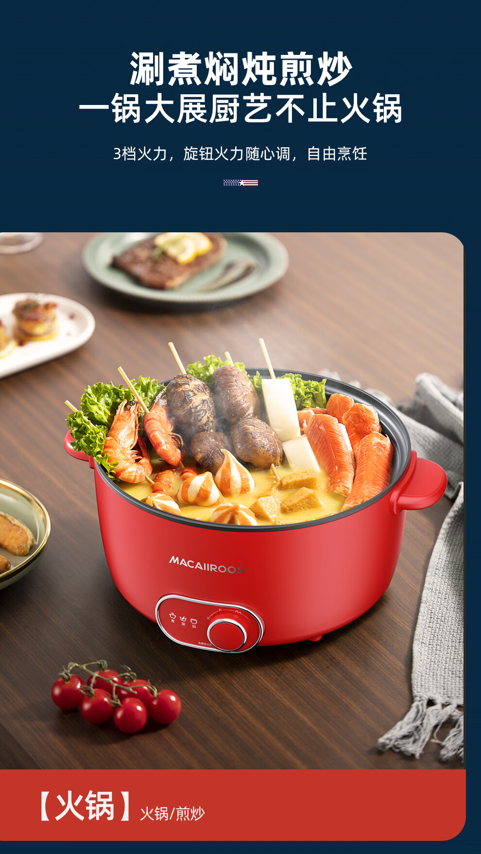 【小家电】迈卡罗MACAIIROOS电火锅3档火力调节电煮锅多用途锅家用焖炖煎炒一体式 MC-HG3525 HF