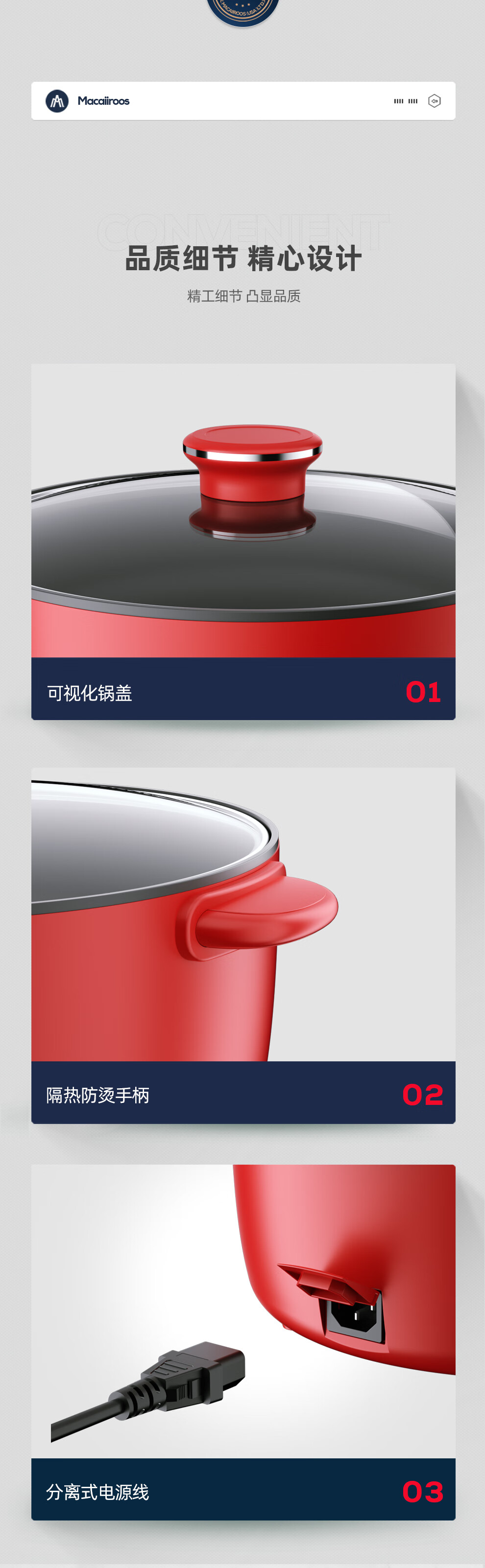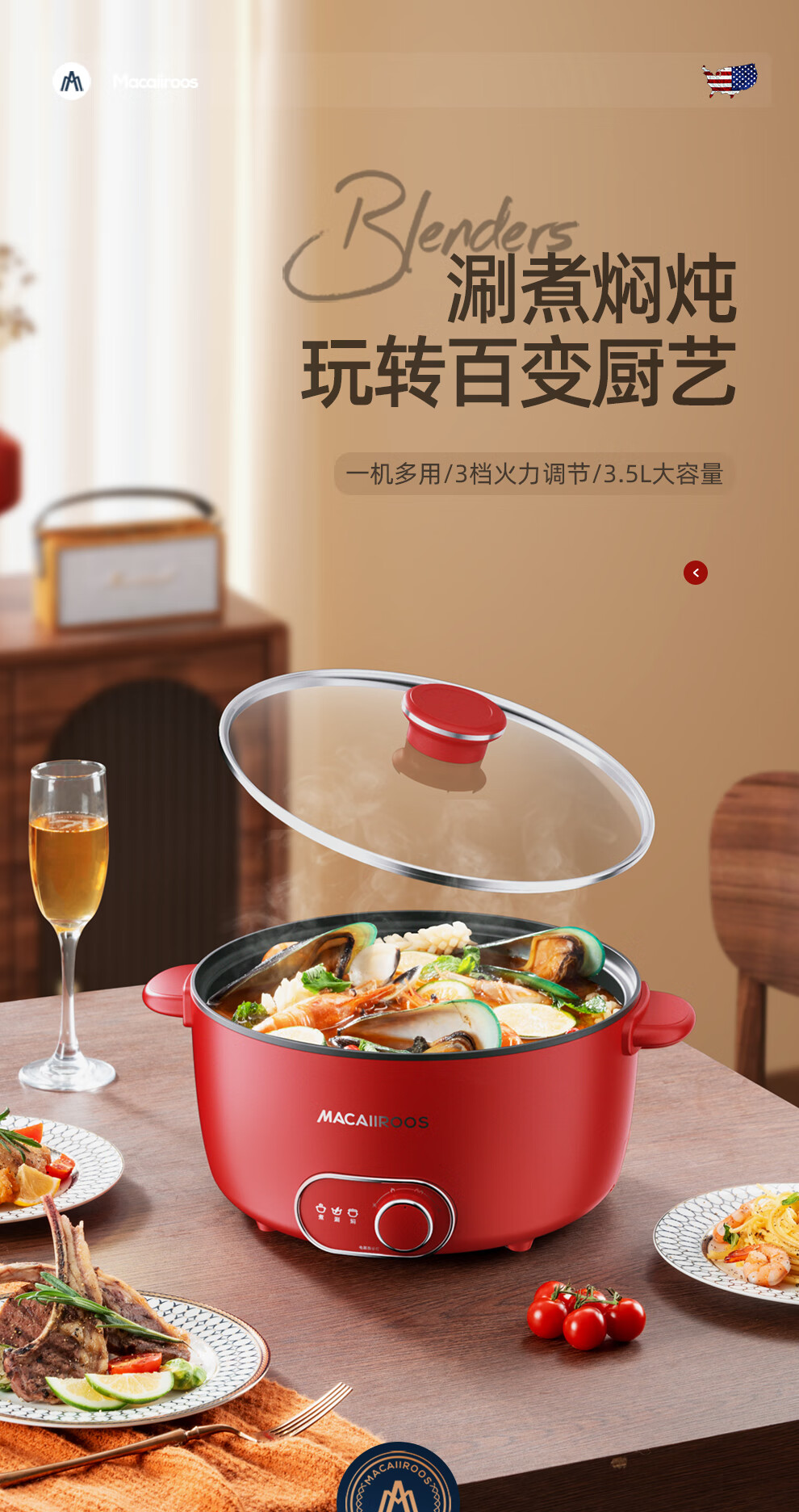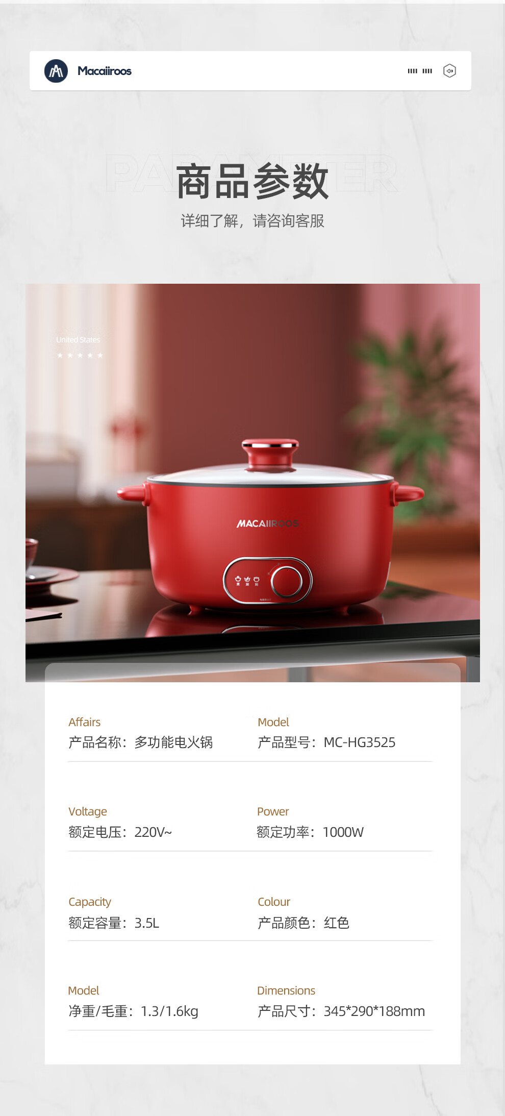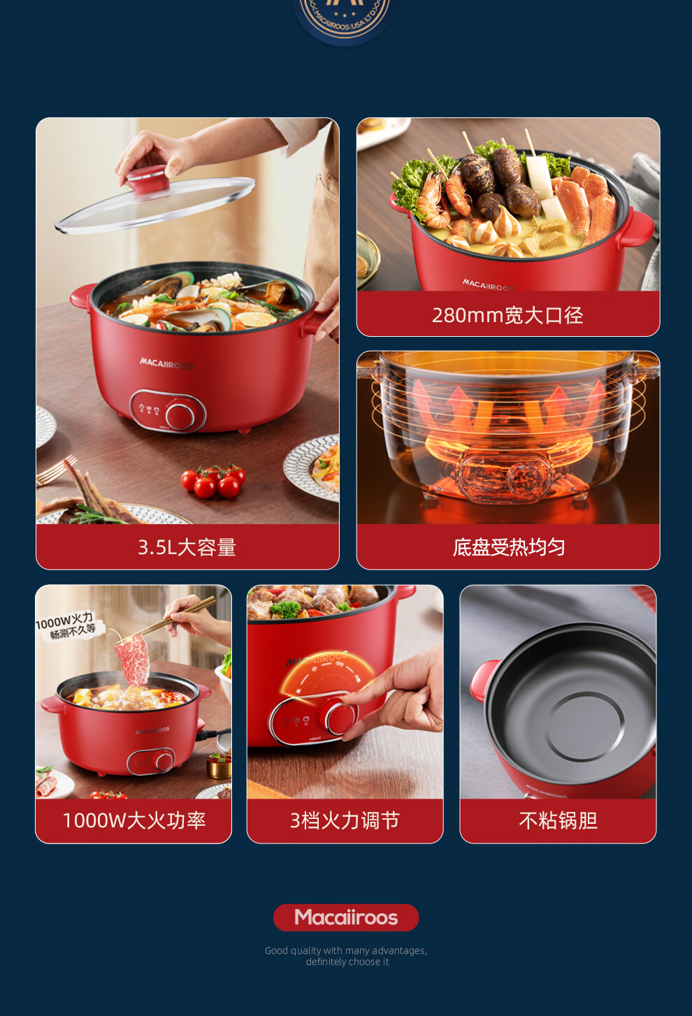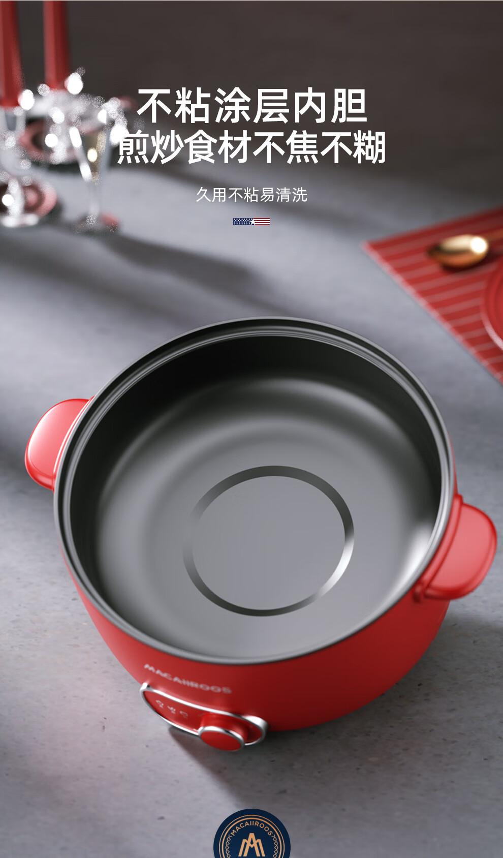 【小家电】迈卡罗MACAIIROOS电火锅3档火力调节电煮锅多用途锅家用焖炖煎炒一体式 MC-HG3525 HF