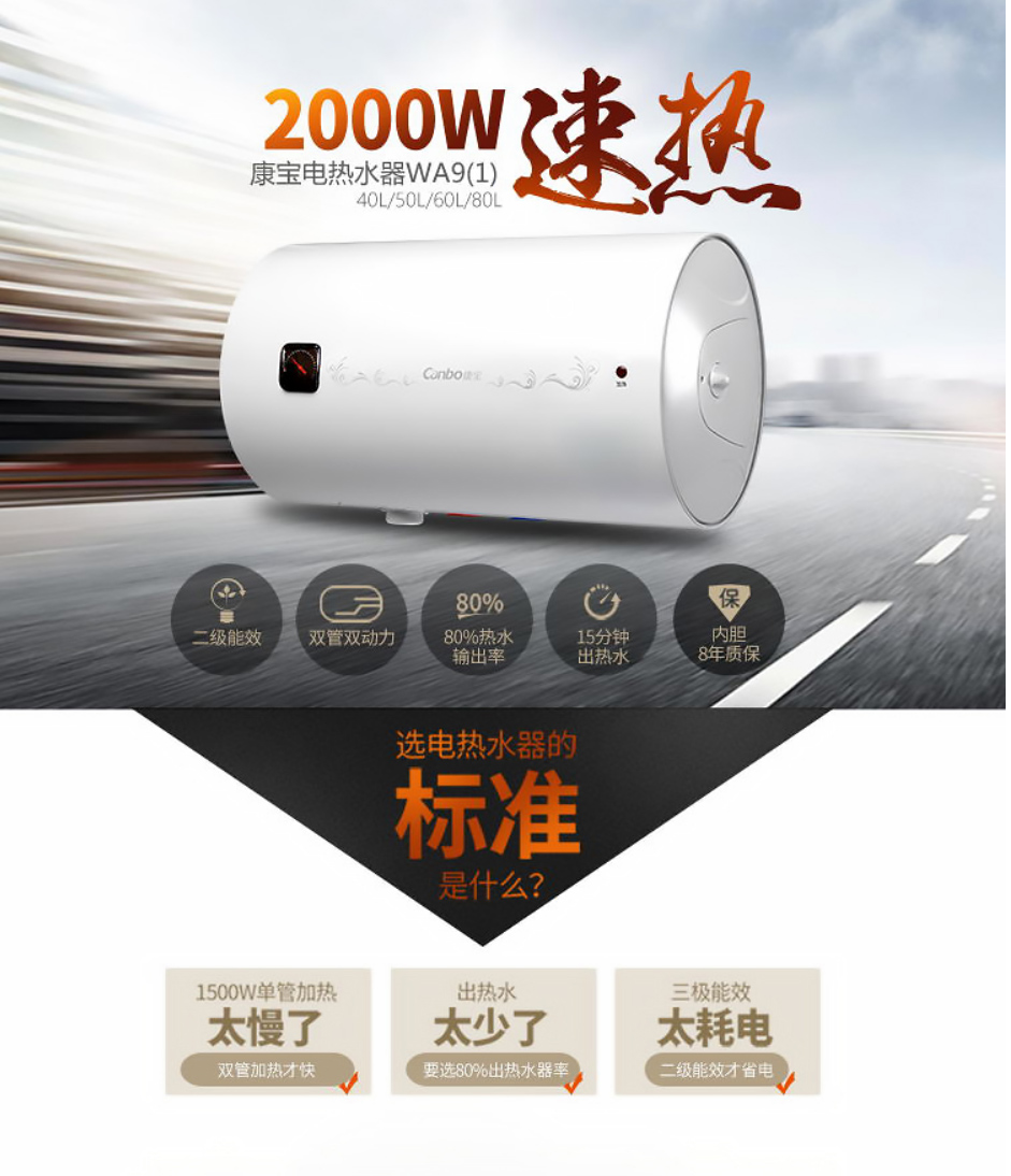 康宝 CBD60-WA9(60L)电热水器家用节能速热浴室淋浴即热式储水热水器