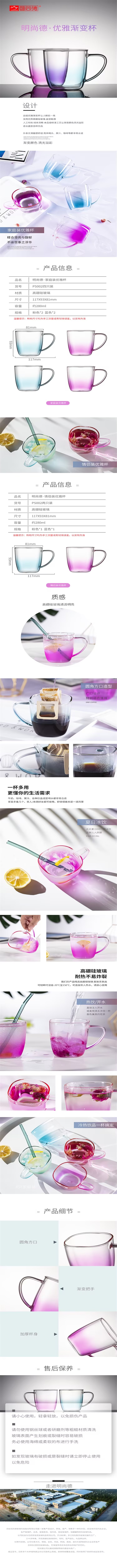 明尚德幻彩加厚耐热玻璃渐变色玻璃对杯(280ml*2)