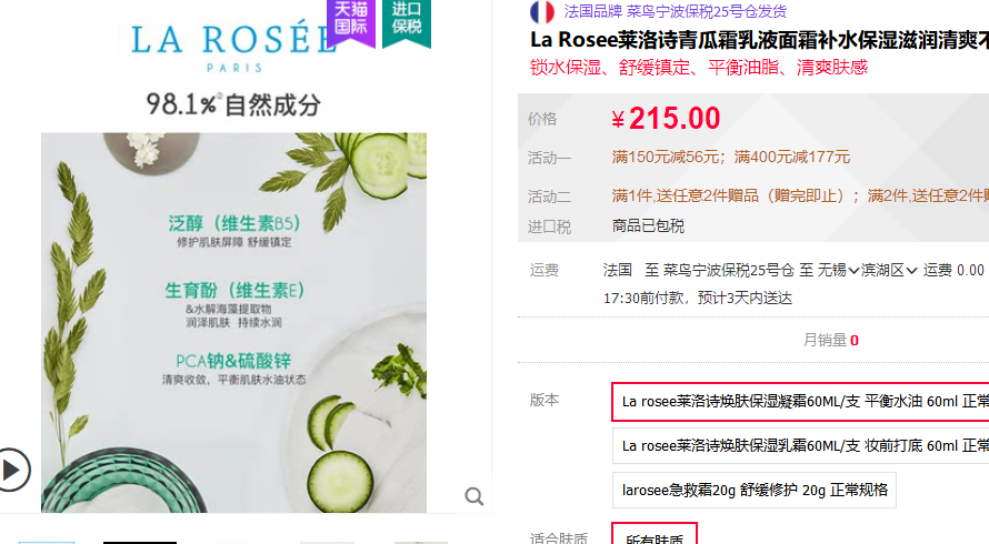 一抹化水,清爽保湿,这款也叫青瓜霜,味道好闻,