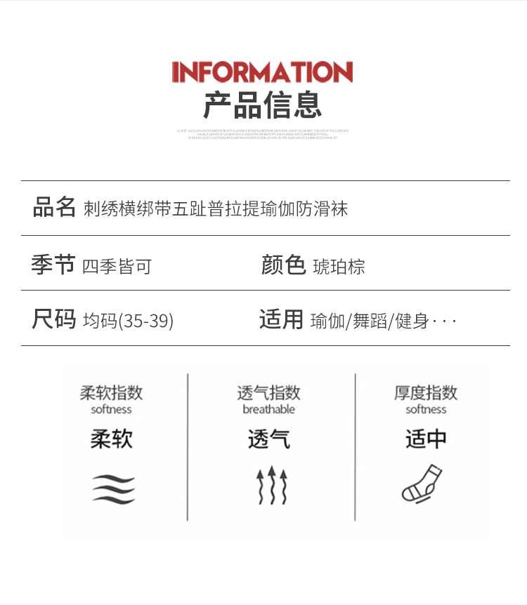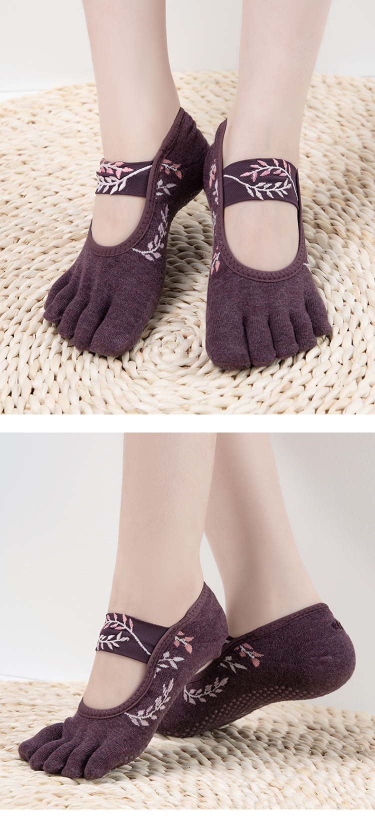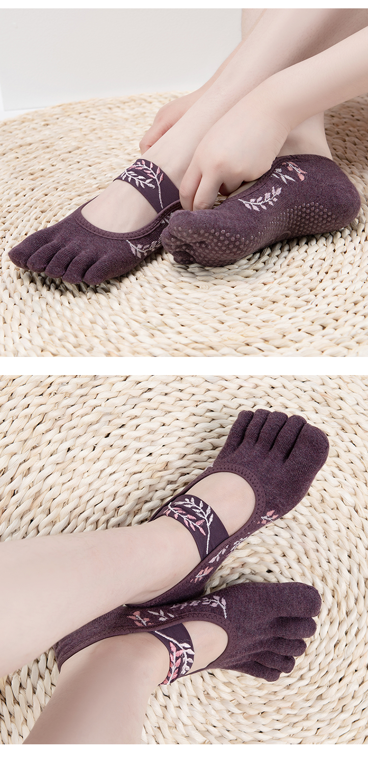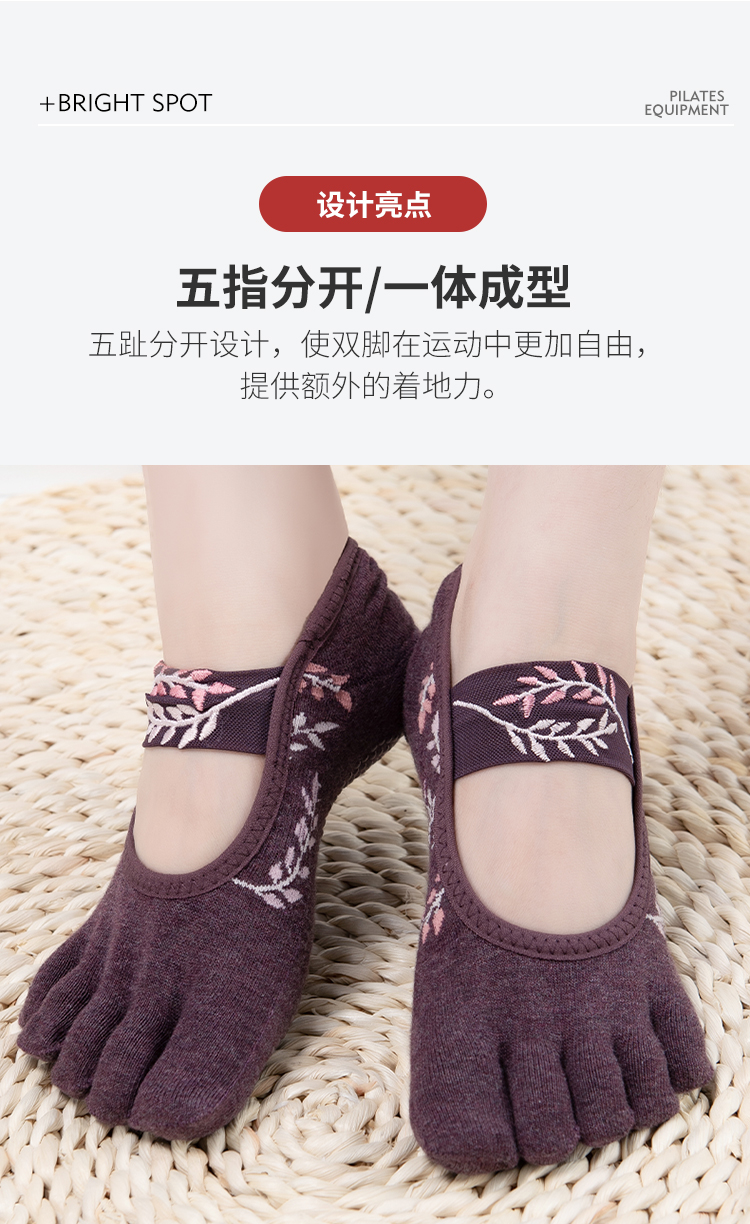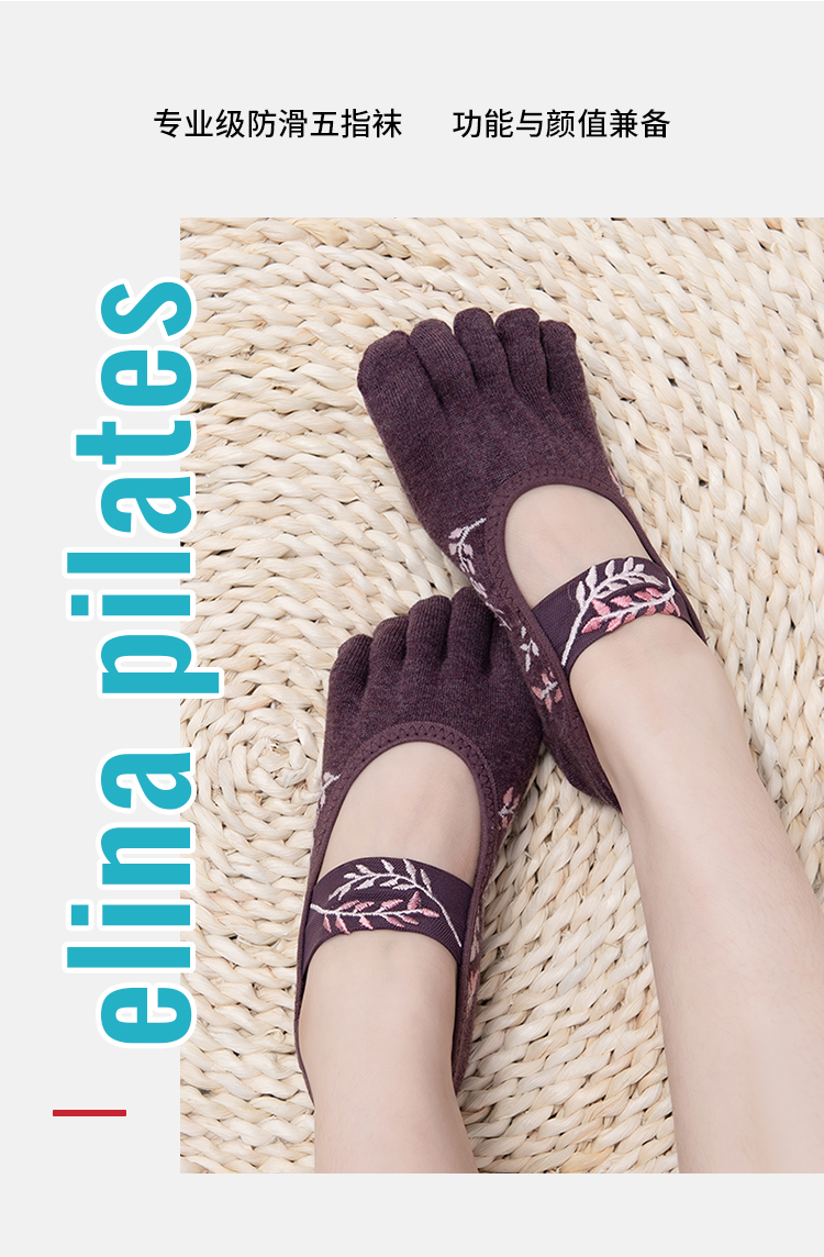 elina一恋2024 刺绣横绑带五趾普拉提瑜伽防滑袜ELR2506