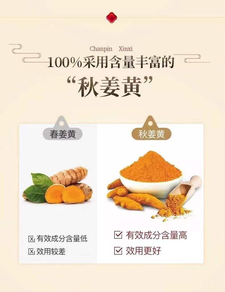 主要成分是姜黄,葛根,橘皮等草本植物,没有任何添加剂,不用担心有副作用