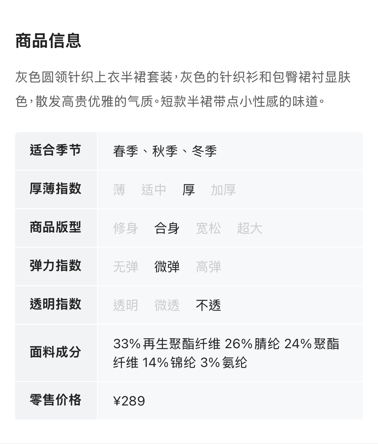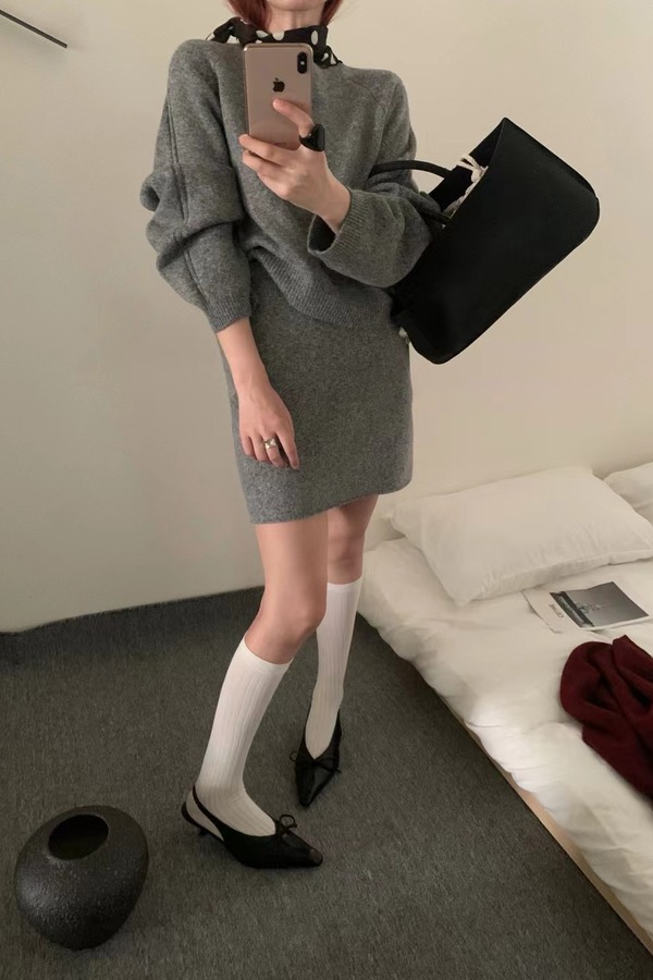 LNNNS 灰色圆领针织上衣半裙套装 21457