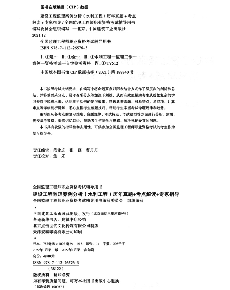 书名:建设工程监理案例分析(水利工程)历年真题+考点解读+专家指导