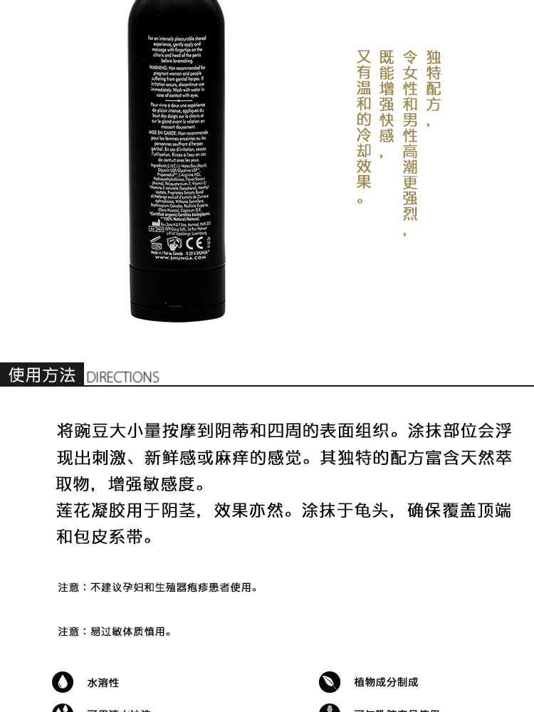 加拿大原装进口SHUNGA春画 莲花凝胶 Lotus noir 男女适用高潮液