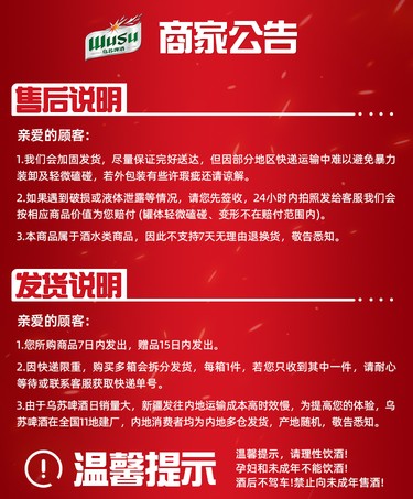 【双12大促】红乌苏复古纪念瓶620ml*6瓶