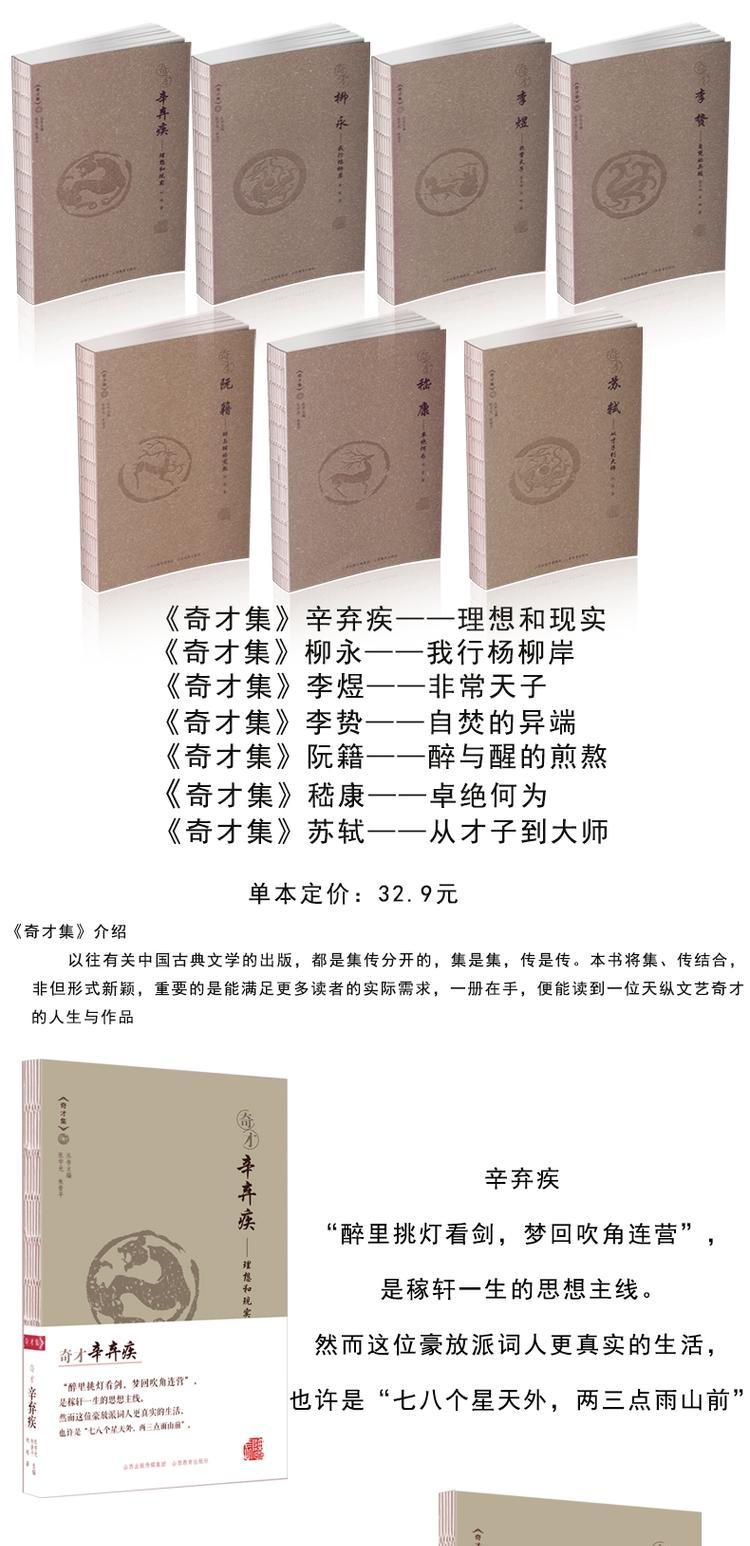 正版13册包邮 奇才集 苏轼 李贽 阮籍 嵇康 李煜 柳永 辛弃疾 讲述诗人传奇的人生与作品 古人名录 文学艺术的融合 中国古代文学史