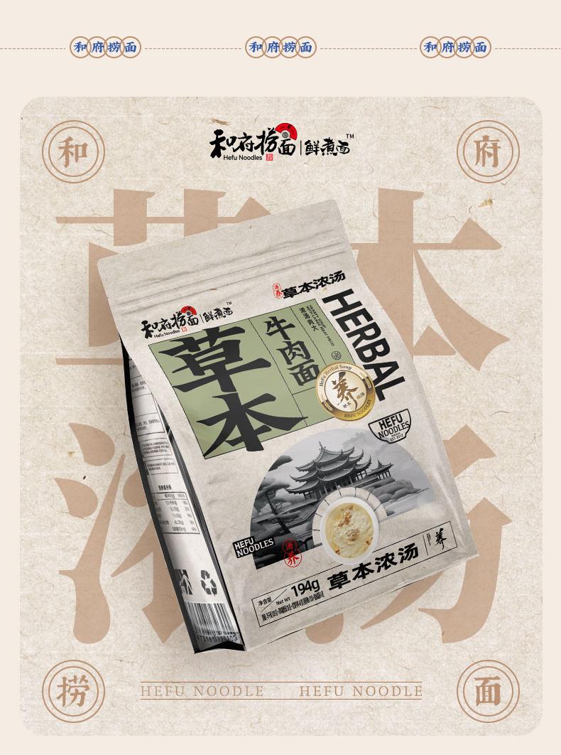 和府捞面 鲜煮面(草本牛肉)194g*6
